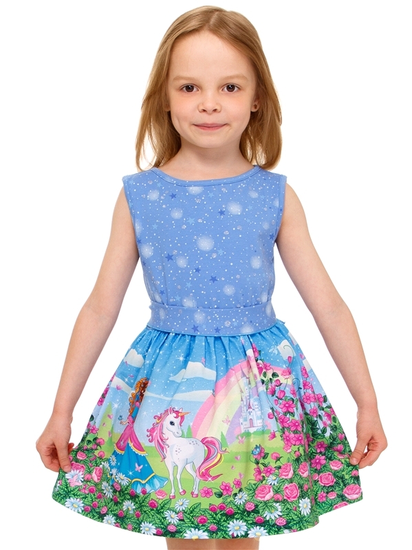 Состав: кулир с лайкрой / хлопок 92% + лайкра 8%. Платье для девочки выполнено из тонкого хлопкового полотна с лайкрой. Изделие без рукавов, с пышной юбкой, декорированной дизайнерской печатью. Отличн... Показать описаниеый наряд для маленьких принцесс! Уход: только машинная стирка (руками не стирать!) при температуре 40 градусов, без предварительного замачивания.