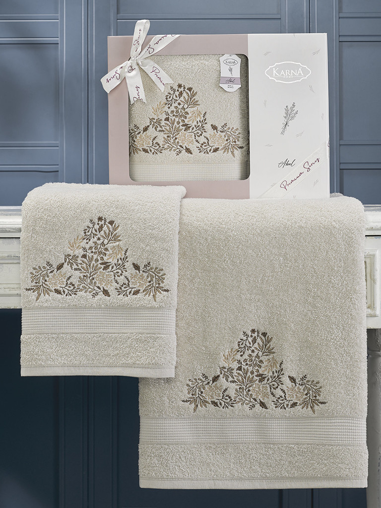 Состав: 100% хлопок Размер: Полотенце (50x90) см -1 штука, Полотенце (70х140) см 1штука Размер: Полотенце набор Количество полотенец: 2 шт. Плотность: 450 гр/м2 Описание: Комплект полотенец ABEL: изго... Показать описаниетовлен из высококачественных хлопковых ниток (Ring). Он добавит красок в вашу ванную комнату благодаря дизайну и вышивки. Наши полотенца станут хорошим подарком для вас и ваших близких благодаря стильной упаковке и ленточке. Набор (полотенце для рук 50х90 см - банное полотенце 70х140 см) состоит из 2 полотенец. Преимущества данной модели: - Высокая водопоглощаемость. - Натуральный, гипоаллергенный. - Пока соблюдаются инструкции по стирке, полотенце остается мягким и сохраняет свой первоначальный цвет. - Производство и происхождение товаров могут отсутствовать на 2-3 см. - Перед использованием изделие рекомендуется стирать. Произведено в Турции. Больше картинок и информации (есть отзывы) на странице.