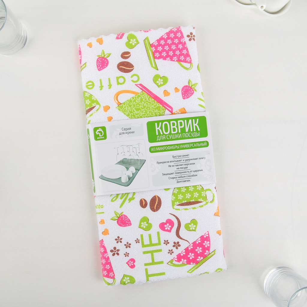 Коврик для сушки посуды двухсторонний Доляна, микрофибра. Салфетка для сушки посуды поможет поддерживать гигиену на кухне. Ее преимущества: микрофибра быстро и эффективно впитывает лишнюю влагу, препя... Показать описаниетствуя распространению болезнетворных микроорганизмов и порче посуды; материал не теряет влаговпитывающих свойств и стоек к воздействию моющих средств; приятный дизайн поможет сделать интерьер кухни уютнее. Больше картинок и информации (есть отзывы) на странице.
