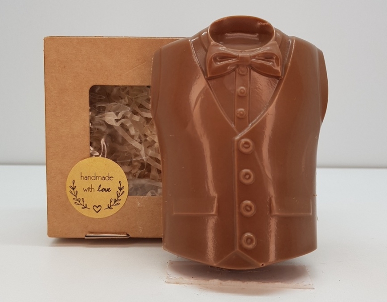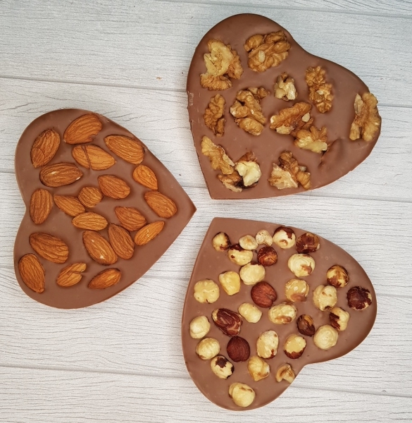 Упакована в пищевую коробку в термоусадочной пленке, которая сохранит изделие от изменения влажности внешней среды и конденсата при перепадах температур. Размер коробки 10х8х3,5 см. Размер фигурки 9х6... Показать описание х2,5см Доступна к заказу в белом шоколаде Ariba, темном шоколаде Ariba 57%, молочном шоколаде Ariba 32%. Состав молочный: сахар, какао-масло, сухое молоко, какао-масса, эмульгатор (подсолнечный лецитин E322), ароматизатор натуральный: ваниль. Содержание какао-массы: минимум 32%. Состав темный 57%: какао-масса, сахар, обезжиренный какао-порошок, какао-масло, эмульгатор (подсолнечный лецитин E322), ароматизатор ваниль натуральная. Состав белый шоколад: сахар, какао-масло, сухое молоко, сухая молочная сыворотка, эмульгатор (Е322 - подсолнечный лецитин), ароматизатор натуральный (ваниль) + орехи на выбор: миндаль, кешью, фундук, грецкий Пищевая и энергитическая ценность в 100гр продукта (кКал/кДж) молочный шоколад: 560/2320. Белки (г) -6,3 , Жиры (г) - 34,5 , Углеводы (г) - 55. Пищевые волокна (г) - 1,5.
