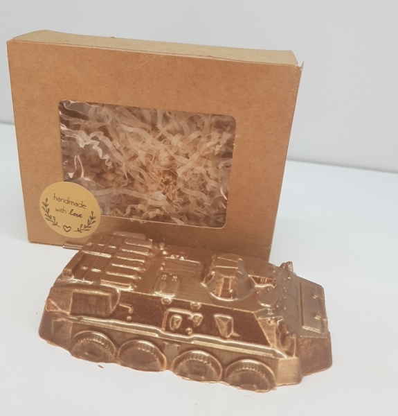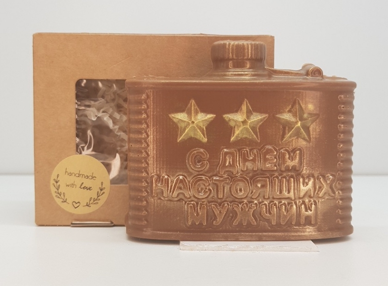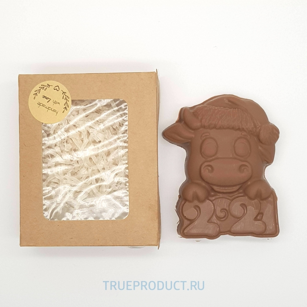 Упакована в пищевую коробку в термоусадочной пленке, которая сохранит изделие от изменения влажности внешней среды и конденсата при перепадах температур. Размер коробки 10х8х3,5 см. Размер фигурки 9х6... Показать описание х2,5см. Вес 90-110 гр Состав: сахар, какао-масло, сухое молоко, какао-масса, эмульгатор (подсолнечный лецитин E322), ароматизатор натуральный: ваниль. Содержание какао-массы: минимум 32%. Возможно использование пищевого кандурина. Пищевая и энергитическая ценность в 100гр продукта (кКал/кДж) молочный шоколад: 560/2320. Белки (г) -6,3 , Жиры (г) - 34,5 , Углеводы (г) - 55. Пищевые волокна (г) - 1,5.