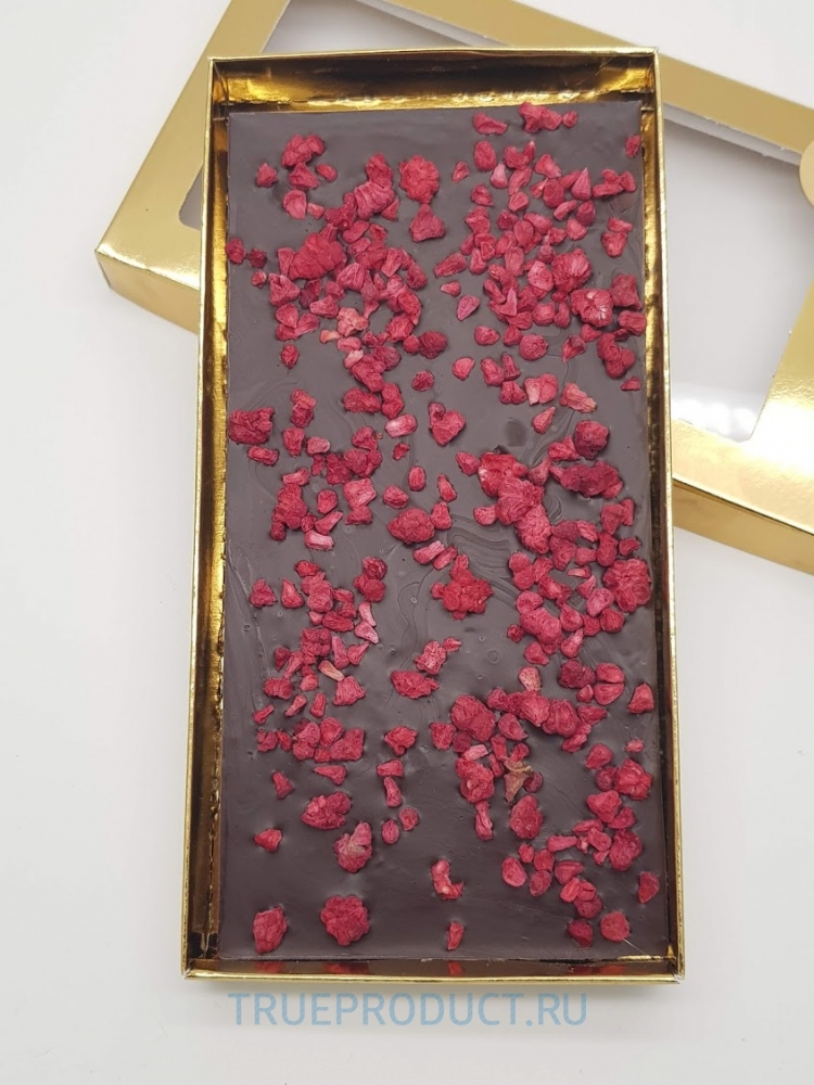Шоколадная плитка из темного шоколада с сублимированной малиной 100 грамм