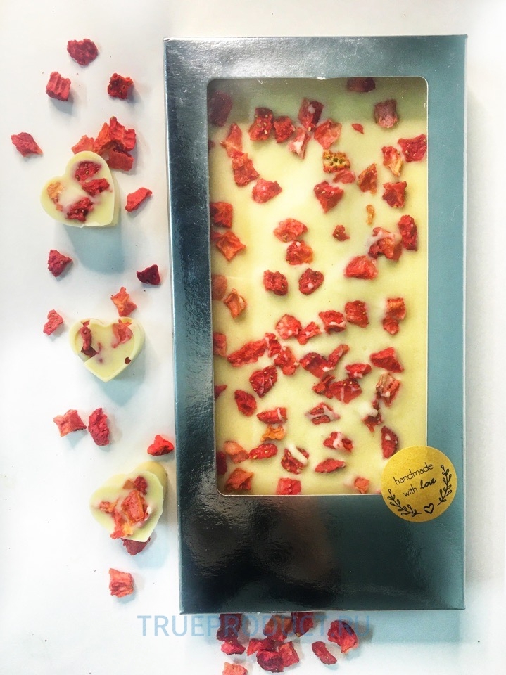 Шоколадная плитка из белого шоколада с сублимированной клубникой, 100 грамм