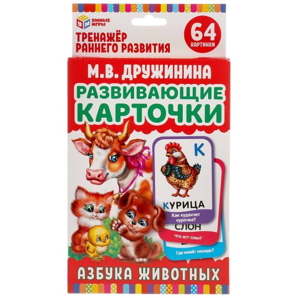 АЗБУКА ЖИВОТНЫХ ДРУЖИНИНА  КАРТОЧКИ РАЗВИВАЮЩИЕ. (32 КАРТОЧКИ) КАРТОЧКИ 107Х157ММ в кор.32шт