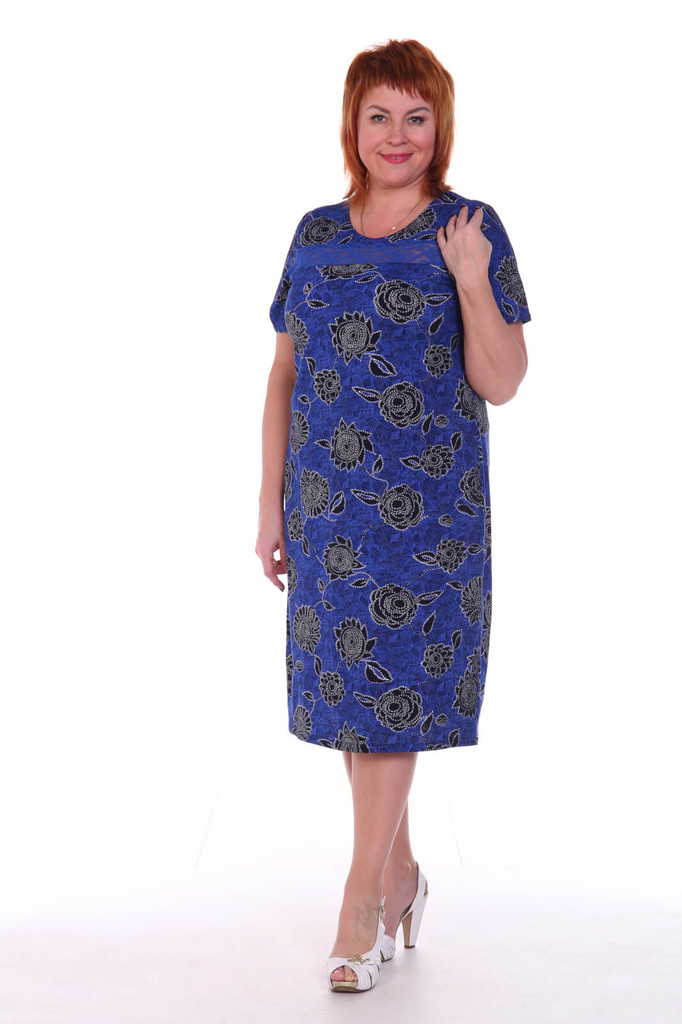 Платье "Барбара". Трикотаж - Кулирка (хлопок 100%) + гипюр. Размеры: 54 - 64. Платье полуприталеного силуэта. На груди имеет декоративную вставку из гипюра. Рукав втачной на подгиб. Карманы пристрочны... Показать описаниее. Горловина, низ изделия подогнуты.