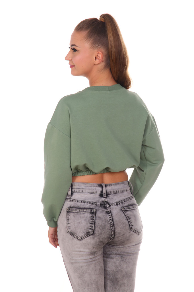 Толстовка"Аутфит". Трикотаж - Футер двунитка с лайкрой (Хлопок 75%; Полиэстер 20%; Лайкра 5%). Размеры 40 - 50. Женская укороченная толстовка выполнена из трикотажного полотна "футер двунитка с лайкро... Показать описанией. Толстовка свободного силуэта со спущенным плечом, рукав длинный, широкий, низ рукавов и низ толстовки собран эластичной тесьмой.