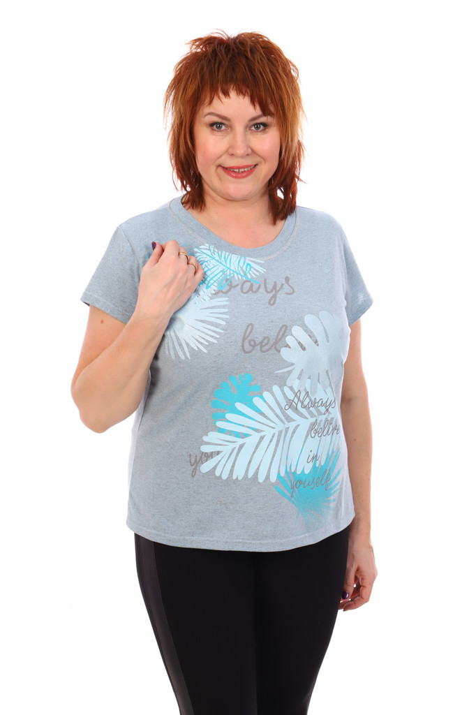 Футболка "Бамбук". Трикотаж - Кулирка меланжированная. Хлопок 100%. Размеры 44 - 62. Футболка пуоуприлегающего силуэта с втачным рукавом, спинка удлиненная. На полочке — принт. Горловина обработаны об... Показать описаниетачкой в цвет изделия с использованием пятиниточного шва с ниткой цвета «серебро».  Низ рукава и низ изделия обработыны швом в подгибку.