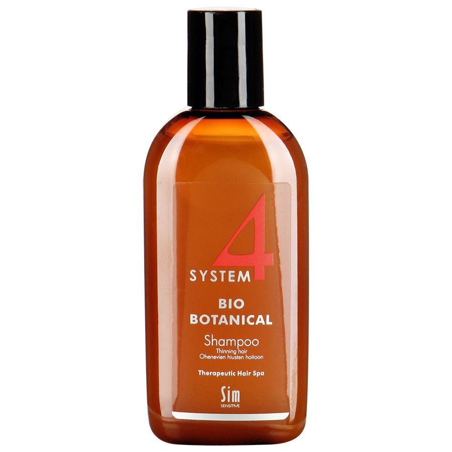 Bio Botanical Shampoo - нейтрализует воспаления, питает корни волос и является стимулятором для ослабленного кровообращения, чем способствует росту волос, а также: препятствует выпадению волос эффекти... Показать описаниевно очищает волосы и кожу головы. Био-ботанический шампунь серии System 4 направлен на лечение выпадения волос и восстановление роста волос. В состав шампуня входят только натуральные ингредиенты, такие как: репейник, полевой хвощ, настурция большая, крапива, листья березы, розмарин, алое, водяной кресс, мята, касторовое масло, экстракт конского каштана, масло чайного дерева, которые содержат каротины, фитонциды, аскорбиновые кислоты и микроэлементы способствующие укреплению корней волос, стимуляции их роста и останавливающие преждевременное выпадение волос. витамины С, Е, РР, В5, В6 и активно-очищающие ингредиенты, эффективно останавливают выпадение волос, стимулируют рост новых, здоровых волос и повышают их густоту, в состав которых входят: пироктон оламин - обладает антигрибковым и антибактериальным эффектом салициловая кислота - снимает раздражение кожи головы пантенол способствует восстановлению волос, поврежденные некачественными химическими составами и красящими веществами. Применение: био-ботанический шампунь нанести на влажные волосы, слегка массируя кожу головы в течение 2-3 минут, затем смыть. Для наилучшего эффекта оставьте шампунь на волосах на 2-3 минуты перед полосканием. Использовать шампунь рекомендуется не реже 2 раз в неделю, в течение 1-2 месяцев в комплексе с Био ботанической сывороткой серии System 4. Объем: 100 мл