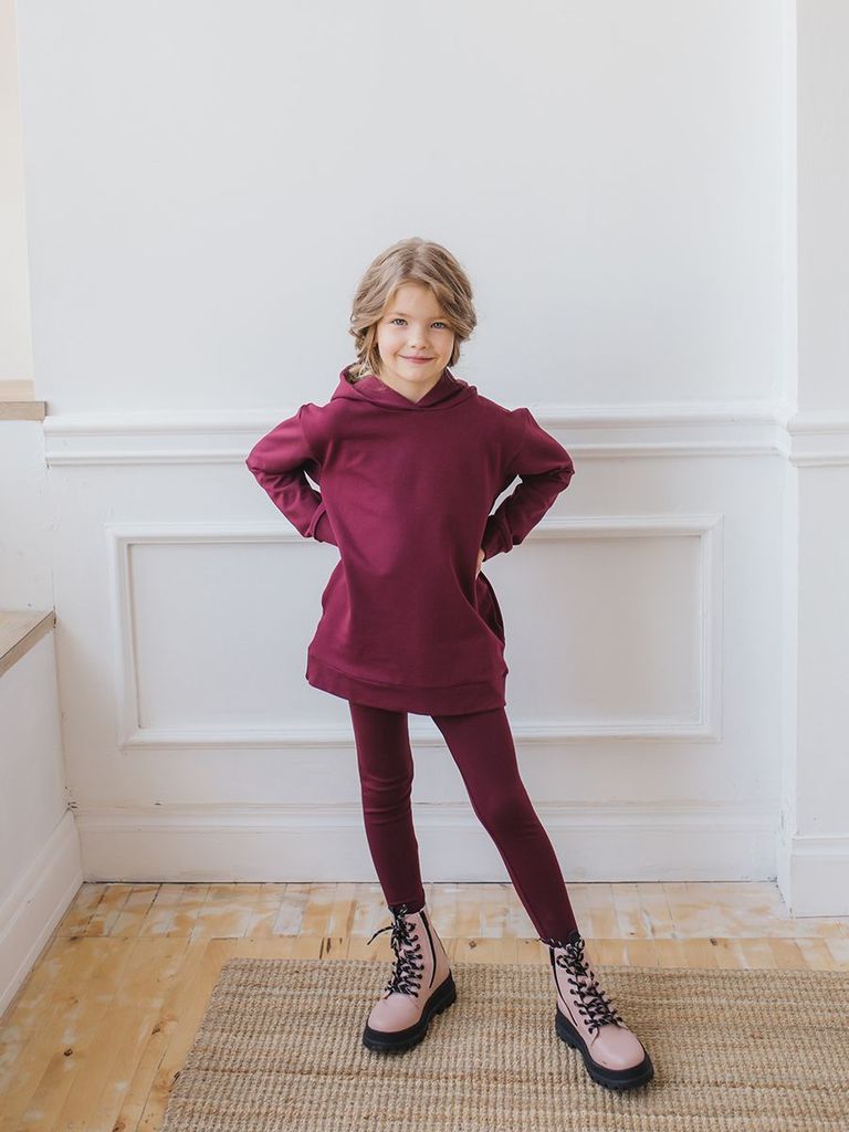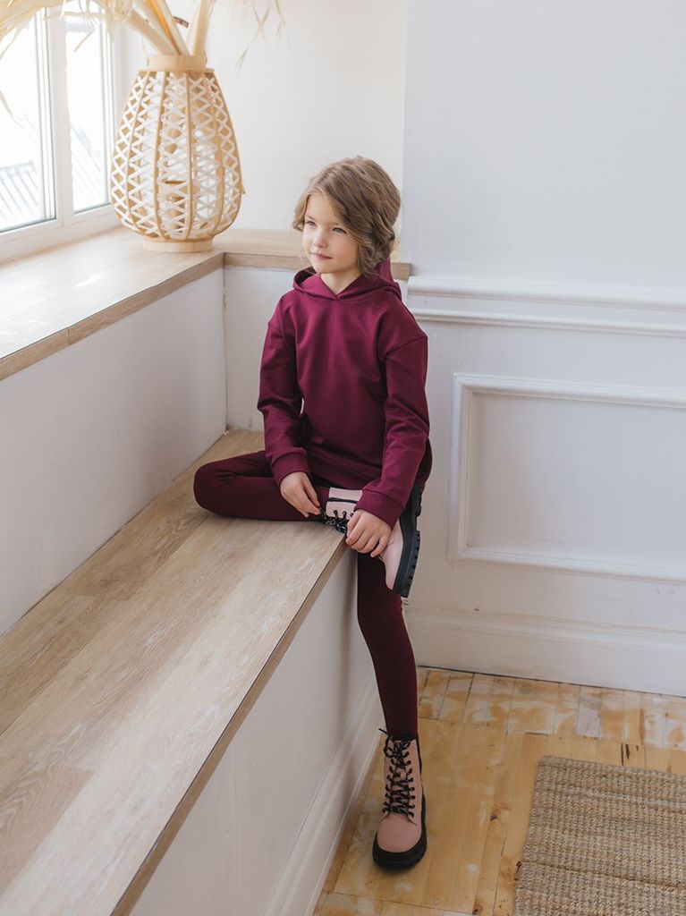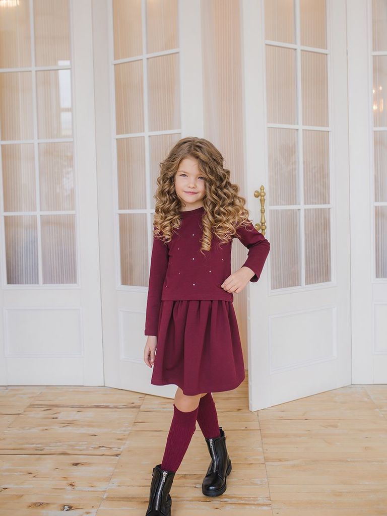 Великолепный комплект из юбки и джемпера для девочки. Яркий насыщенный цвет Бордо. Состав: 95% хлопок, 5 лайкра. Материал: футер.