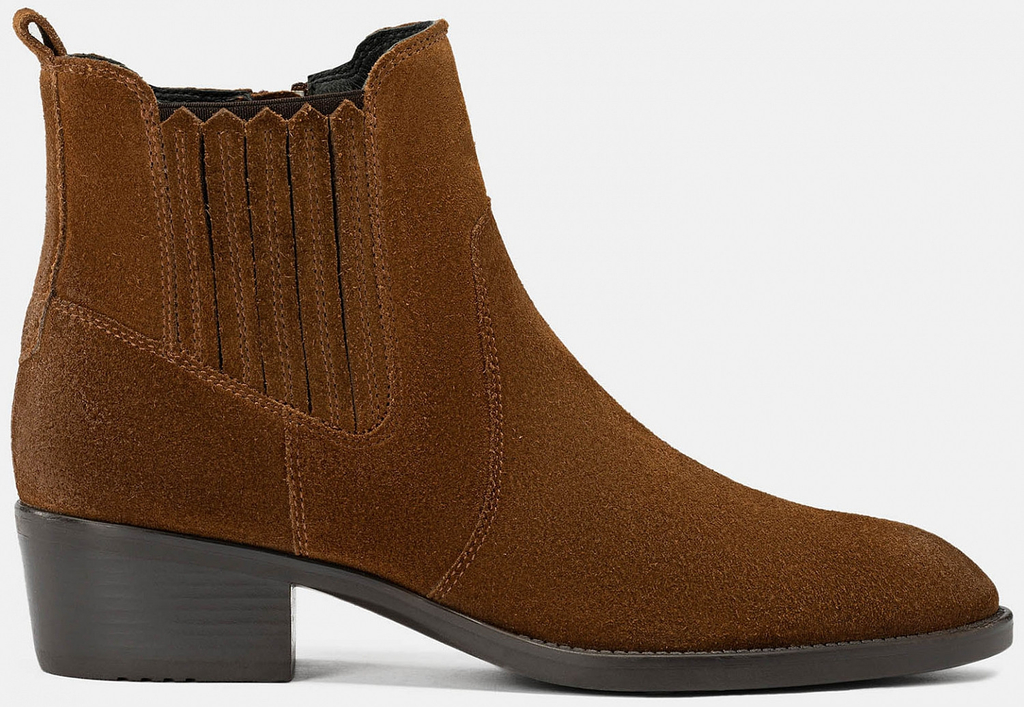 Элегантные ботинки челси EVELYN сшиты из прочного натурального материала высокого качества. Заостренный нос и невысокий устойчивый каблук придают модели более дерзкий вид. Эластичная резинка-вставка и... Показать описание молния сбоку обеспечат плотную и комфортную посадку по ноге. Прекрасный вариант для создания модного образа в деловом и городском стилях. Модель удачно смотрится с джинсами, классическими костюмами, юбками и платьями. Внутренний материал: Текстиль. Материал верха: Спилок. Материал подклада: Текстиль. Материал подошвы: ТЭП. Пол: женский. Сезон: демисезон. Верх: спилок. Подошва: ТЭП. Материал стельки: текстиль. Высота каблука: 4,5 см. Высота голенища: 12 см. Коллекция: Осень-Зима 2021-22. Подклад: текстиль. Линейка: Classic. Полнота: 5 (Стандарт). Крепление подошвы: Клеевой. Больше картинок (информации) и таблица размеров на странице.