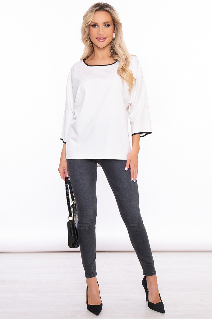 Идеальная блуза свободного кроя в базовом оттенке белого. Можно надевать с поясом, подчеркивая линию талии, либо же без него. Блуза свободного кроя, вырез горловины округлый, обработан чёрной ок... Показать описаниеантовкой; Поясок в комплекте, позволяет красиво подчеркнуть талию; Рукав цельнокроеный, фасон "летучая мышь", семь восьмых. Рукав широкий, низ украшен окантовкой; Ткань: блузочная; Состав: 83% п/э, 12% вискоза, 5% эластан; Цвет: белый; Размерная линейка: 44-54; Длина изделия: 44 / 65 см, 46 / 65 см, 48 / 65 см, 50 / 65 см, 52 / 66 см, 54 / 66 см; Длина рукава: 46 / 50 см, 48 / 50 см, 50 / 50 см, 52 / 51 см, 54 / 51 см; Допуск отклонения длины при массовом производстве 1-3 см является нормой; Рекомендована ручная стирка при 30 С; Параметры модели: рост 168 см, грудь 87 см, талия 60 см, бедра 89 см.