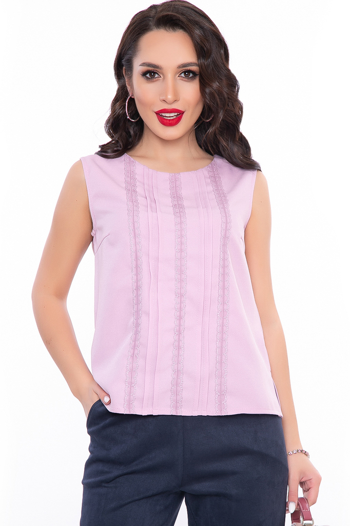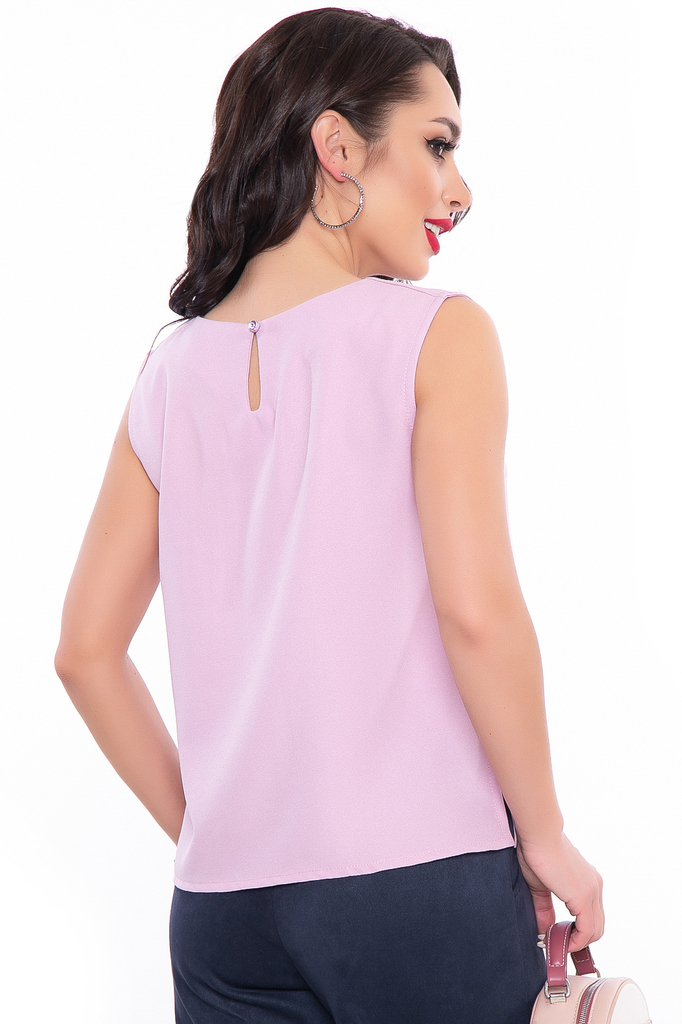 Женственная блуза в нежном лиловом оттенке создаст красивый классический образ. Блуза свободного кроя с декором по передней части; Округлый вырез горловины; Блуза без рукавов, по бокам разрезы, сзади ... Показать описаниезастёжка "петля-пуговица"; Цвет: лиловый; Ткань: блузочная; Состав: 52% вискоза, 43% п/э, 5% эластан; Размерная линейка: 42 - 48; Длина готового изделия по спинке: 42 / 51 см, 44 / 52 см, 46 / 53 см, 48 / 54 см; Допуск отклонения длины при массовом производстве 1-3 см является нормой; Параметры модели: рост 168 см, грудь 87 см, талия 60 см, бедра 89 см; Рекомендована ручная стирка при 30 С.