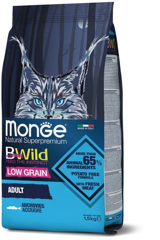 Monge Cat BWild LOW GRAIN низкозерновой корм из анчоуса для взрослых кошек 1,5 кг