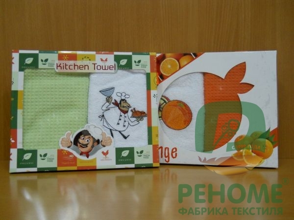 Размер полотенец : 50*70; количество предметов в наборе: 2 полотенца в наборе; упаковка полотенец: без упаковки; тематика полотенец: кухонные; вид ткани полотенец: вафельное.