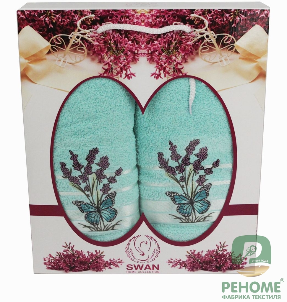 Набор полотенец махровых Гюрсан Турция, 22/459, ДНС Бабочки, 2 предмета 50*90+70*140