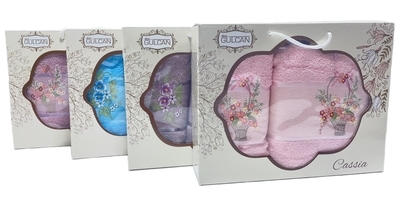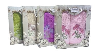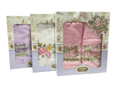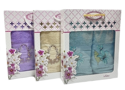 Размер полотенец : 50*90+70*140; количество предметов в наборе: 2 полотенца в наборе; упаковка полотенец: коробка; тематика полотенец: женское; вид ткани полотенец: махровое.