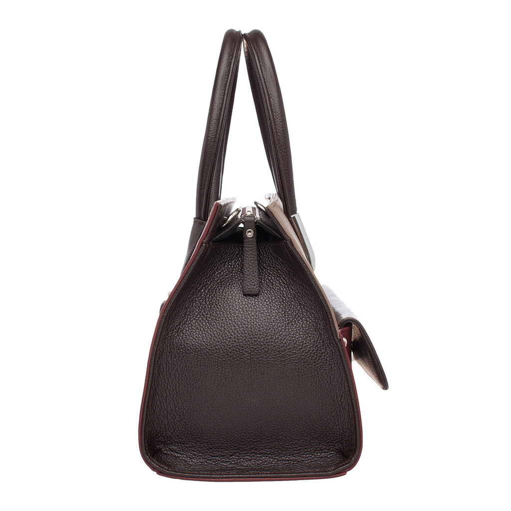 Женская сумка Darnley Taupe выполнена из натуральной, высококачественной кожи коричневого цвета (цвет "тауп") с бордовыми вставками. Имеет прямоугольную форму, широкие боковины и ручки средней длинны.... Показать описание Кожаный ремень для ношения на плече отстегивается. Содержит два вместительных отсека на застежке, куда поместятся вещи форматом А5. Внутри – отделения открытого и закрытого типа, отдел для мелких предметов. С тыльной стороны есть дополнительный, застегивающийся на молнии, карман. Благодаря основному светлому тону, сумка добавит любому вашему образу очарование, женственность и привлекательность. Подходит для делового и вечернего стиля. Производитель обладает исключительным правом менять изделие на свое усмотрение, внедряя таким образом результат работ по усовершенствованию конструктивных особенностей или технологии изготовления, не допуская при этом ухудшения технических и эксплуатационных характеристик изделия. Изображение готовой продукции, размещенное на сайте производителя, может иметь отличия от фактического внешнего вида товара. Посмотрите еще: Женские сумки из натуральной кожи