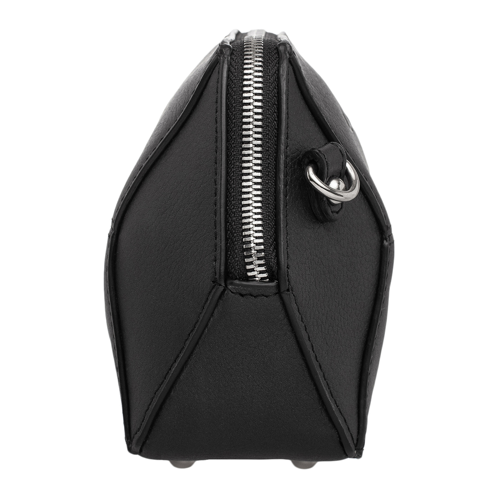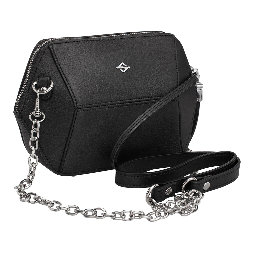 Кожаная сумка Manilla Black Nickel станет отличным дополнением элегантного женского образа. Благодаря изящному дизайну и благородному черному цвету модель будет выигрышно сочетаться с вечерним нарядом... Показать описание и с деловым образом.  Брендовая сумка ярко выделяется своей необычной формой, которая напоминает объемный шестиугольник. Все грани модели акцентированы декоративными швами. Единственное украшение лицевой стороны – металлический логотип производителя. Сумочка из натуральной кожи имеет одно небольшое отделение и два внутренних боковых кармана для мелких вещей. Аксессуар дополнен маленькой съемной ручкой и ремешком через плечо с металлической цепочкой в нижней части. Производитель обладает исключительным правом менять изделие на свое усмотрение, внедряя таким образом результат работ по усовершенствованию конструктивных особенностей или технологии изготовления, не допуская при этом ухудшения технических и эксплуатационных характеристик изделия. Изображение готовой продукции, размещенное на сайте производителя, может иметь отличия от фактического внешнего вида товара. Посмотрите еще: Женские рюкзаки Поясные сумки Сумки для фитнеса Сумки с короткой ручкой Сумки кросс-боди