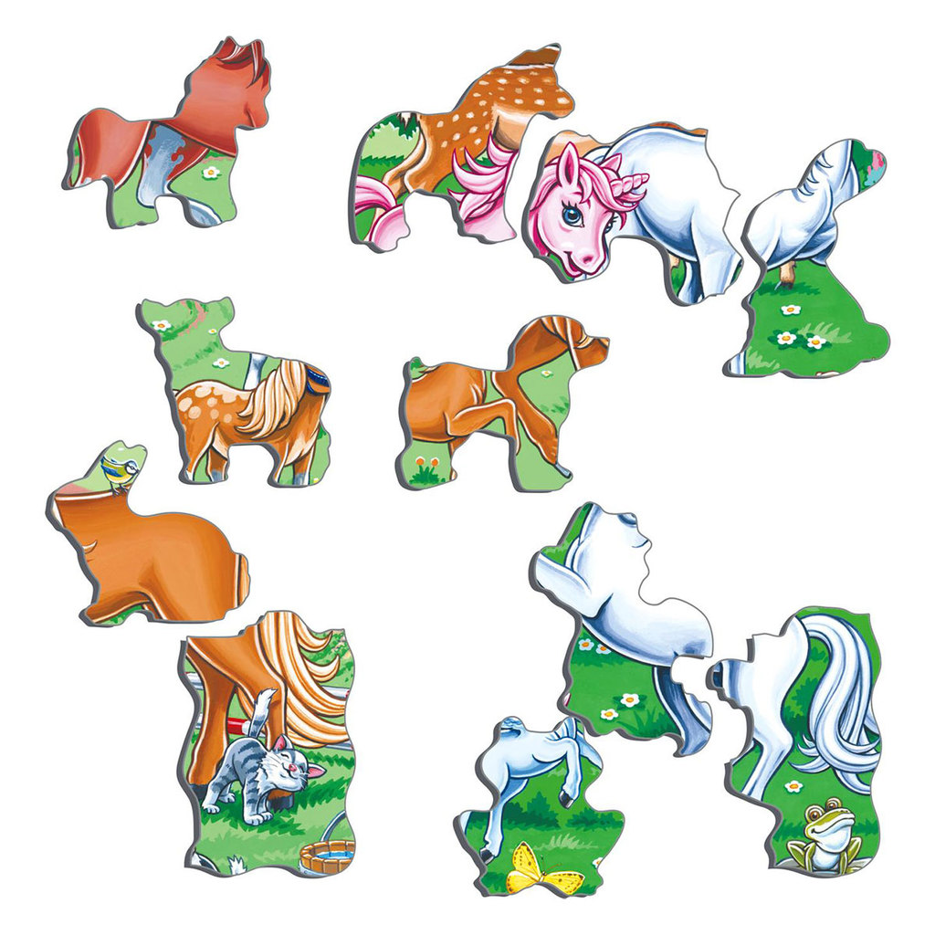 «Единороги» — это 4 пазла с разными сюжетами от Larsen, которые созданы для того, чтобы дарить детям радость. Один из пазлов — на тему животных на ферме. Кроме молодой лошади, вы видите двух коров, по... Показать описаниени, гуся с гусятами, ягнят, маленького поросенка и петуха с цыплятами. На другом пазле изображена красивая лошадь с жеребенком, окруженная домашними животными. На третьем пазле-единорог с детенышем, в компании лесных животных-оленей, белок, кроликов и утки с утятами. На четвертом пазле — маленький дракон с длинным хвостом, сидящий и наблюдающий за тремя счастливыми крылатыми единорогами, танцующими вокруг поляны с цветами и бабочками. В комплекте: 11 деталей пазла Размер собранного поля: 18,3 х 14,3 см Цена указана за 1 штуку.