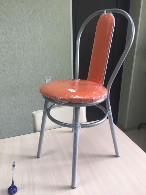 Каркас-труба 22*1 мм. Сиденье стула: ДСП обтянутое поролоном обивка из искусственной кожи, порошково-полимерное покрытие. Вес-4,6 кг. Высота-940 мм. Диаметр сиденья-400 мм.