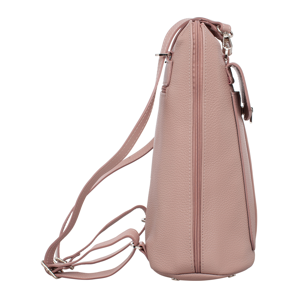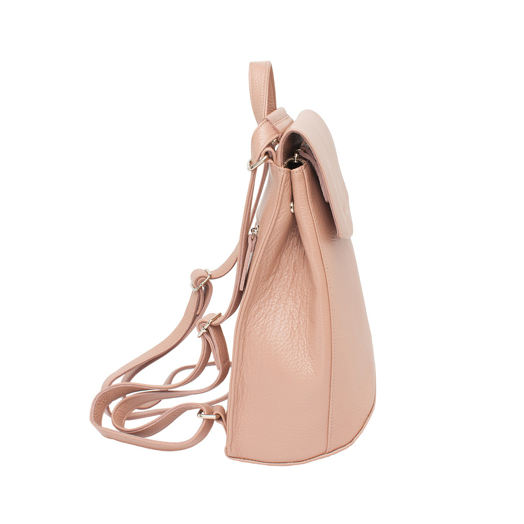 Практичный женский рюкзак из качественной натуральной кожи. Это изделие имеет нежный цвет пепельной розы. С таким аксессуаром можно отправиться практически куда угодно, начиная от занятий в институте ... Показать описаниеи заканчивая вечерней прогулкой с друзьями. Рюкзак очень удобно транспортировать как за спиной, на двух лямках, так и на плече, как сумку, ведь это рюкзак-трансформер. Внутреннее пространство грамотно организовано. Изделие имеет одну просторную секцию и несколько карманов, в которые можно разложить личные вещи: смартфон, документы, косметику. Аксессуар фиксируется на молнию и на откидной магнитный клапан из кожи. При необходимости, объем рюкзака может быть увеличен. Для этого достаточно расстегнуть боковые клепки. Практичное и универсальное изделие, которое можно брать с собой куда угодно. Производитель обладает исключительным правом менять изделие на свое усмотрение, внедряя таким образом результат работ по усовершенствованию конструктивных особенностей или технологии изготовления, не допуская при этом ухудшения технических и эксплуатационных характеристик изделия. Изображение готовой продукции, размещенное на сайте производителя, может иметь отличия от фактического внешнего вида товара. Посмотрите еще: Женские кожаные рюкзаки Мужские кожаные рюкзаки Рюкзаки-трансформеры Городские рюкзаки Модные женские рюкзаки