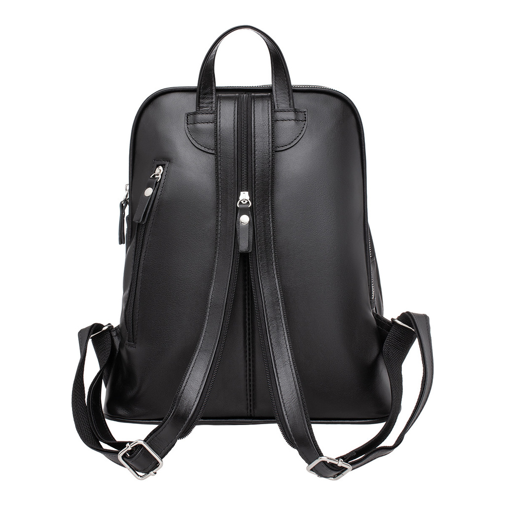 Женский рюкзак Kinsale Black насыщенного черного цвета, сделанный из высококачественной натуральной кожи, станет ярким дополнением спортивного стиля. Объемный аксессуар оснащен небольшой ручкой вверху... Показать описание и двумя лямками для ношения за спиной. На лицевой стороне и по бокам есть застегивающиеся отделы. На спинке есть скрытый кармашек на застежке для хранения важных документов. Один просторный отдел застегивается молнией. Внутри по одному отделению открытого и закрытого типа. Благодаря вместительности, в них поместится ноутбук и масса других необходимых вещей. Рюкзак прекрасно подойдет для молодых, динамичных девушек, следящих за модными тенденциями. Производитель обладает исключительным правом менять изделие на свое усмотрение, внедряя таким образом результат работ по усовершенствованию конструктивных особенностей или технологии изготовления, не допуская при этом ухудшения технических и эксплуатационных характеристик изделия. Изображение готовой продукции, размещенное на сайте производителя, может иметь отличия от фактического внешнего вида товара. Посмотрите еще: Женские кожаные рюкзаки Мужские кожаные рюкзаки Рюкзаки-трансформеры Городские рюкзаки Модные женские рюкзаки