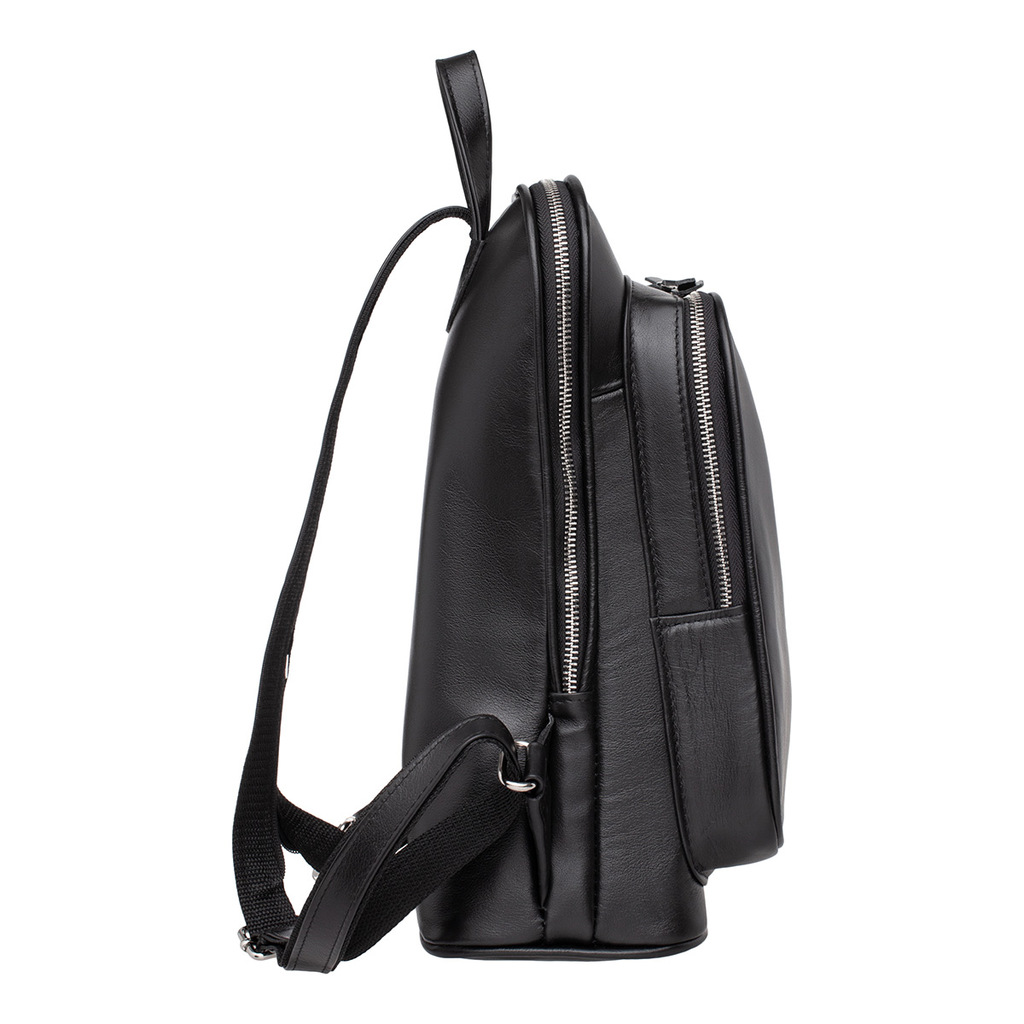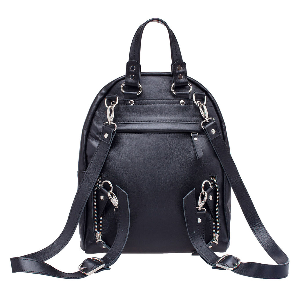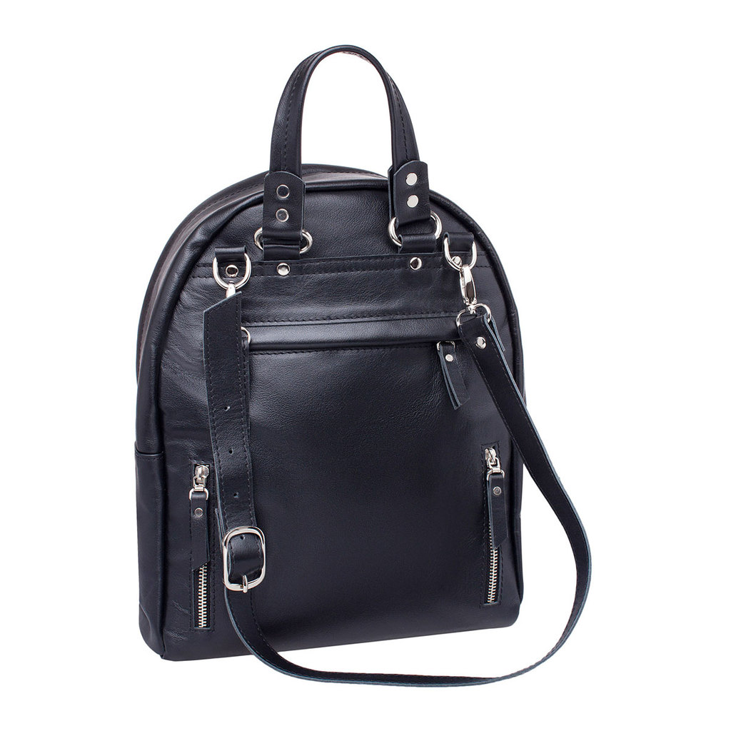 Элегантный черный рюкзак-трансформер для женщин, пошитый из качественной натуральной кожи. Это изделие является универсальным, так как его можно брать с собой куда угодно: на встречи, на занятия или п... Показать описаниерогулки. Изделие оснащено длинной кожаной ручкой, которая позволяет носить рюкзак на плече, а после незначительных трансформаций, ручка превращается в две лямки и рюкзак можно носить за спиной: просто, практично и легко! Производитель обладает исключительным правом менять изделие на свое усмотрение, внедряя таким образом результат работ по усовершенствованию конструктивных особенностей или технологии изготовления, не допуская при этом ухудшения технических и эксплуатационных характеристик изделия. Изображение готовой продукции, размещенное на сайте производителя, может иметь отличия от фактического внешнего вида товара. Посмотрите еще: Женские кожаные рюкзаки Мужские кожаные рюкзаки Рюкзаки-трансформеры Городские рюкзаки Модные женские рюкзаки