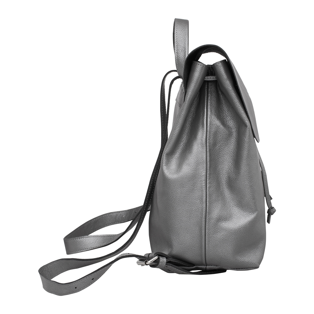 Аккуратный женский рюкзак Belfry Silver Grey - идеальный вариант для занятых девушек, которые не готовы делать выбирать между стилем и удобством. Модель изготовлена из натуральной мягкой кожи серебрис... Показать описанието-серого оттенка и прекрасно подойдет для учебы, работы и прогулок по городу. Два вместительных отделения позволят разместить все вещи в идеальном порядке: ежедневник, ручки, телефон, книга. Места хватит даже для тонкого ноутбука диагональю до 14 дюймов. Рюкзак Belfry Silver Grey оснащен большим карманом на металлической молнии с лицевой стороны и небольшими открытыми карманами по бокам, которые обеспечивают легкий доступ к предметам. Каждый элемент рюкзака Belfry Silver Grey изготовлен из натуральной кожи и бережно собран вручную, что обеспечит длительную и беззаботную эксплуатацию. Производитель обладает исключительным правом менять изделие на свое усмотрение, внедряя таким образом результат работ по усовершенствованию конструктивных особенностей или технологии изготовления, не допуская при этом ухудшения технических и эксплуатационных характеристик изделия. Изображение готовой продукции, размещенное на сайте производителя, может иметь отличия от фактического внешнего вида товара. Посмотрите еще: Женские кожаные рюкзаки Мужские кожаные рюкзаки Рюкзаки-трансформеры Городские рюкзаки Модные женские рюкзаки