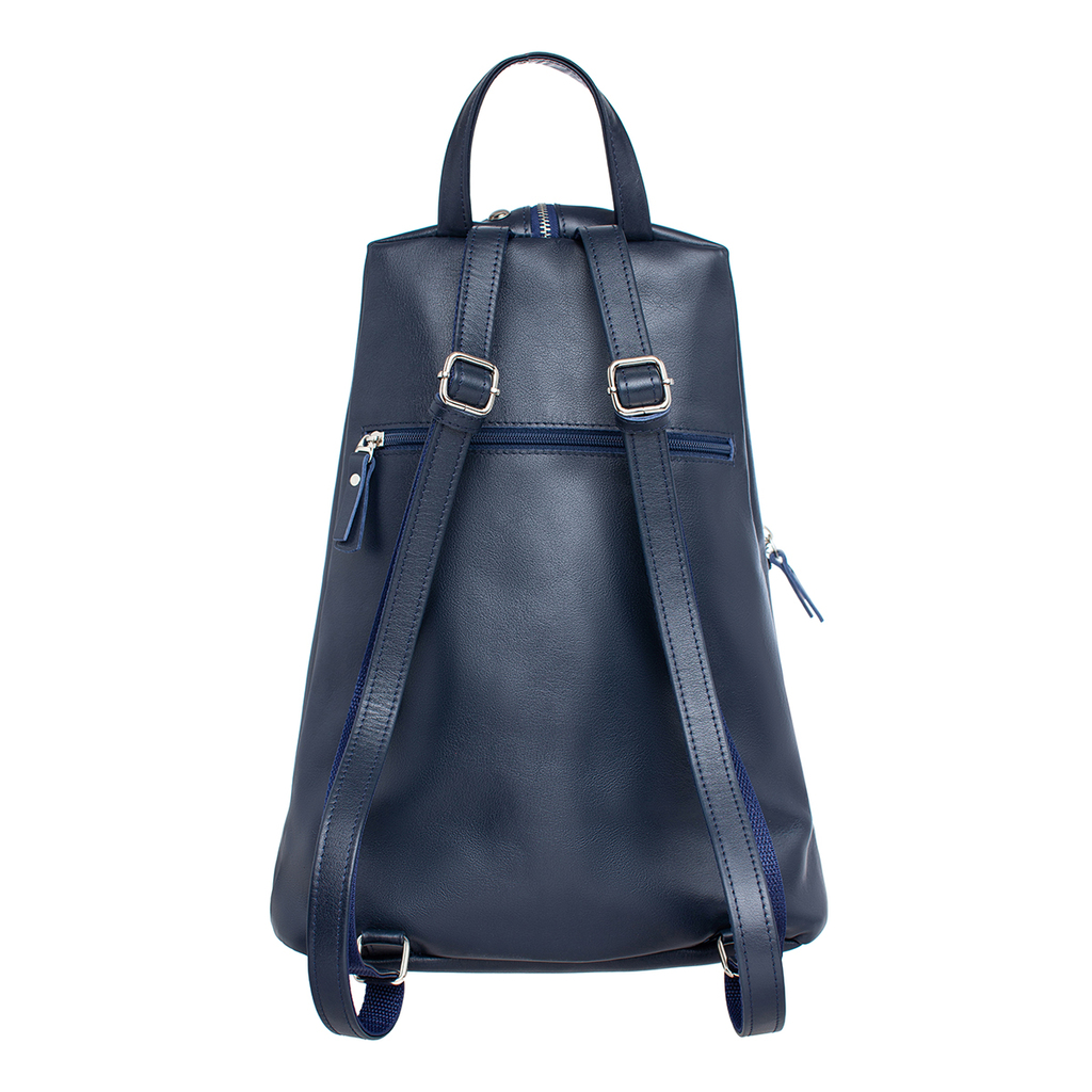 Синий женский рюкзак Copley Dark Blue выполнен в виде трапеции с расширенным основанием. Он изготовлен вручную из отборной 100% натуральной кожи лучшего качества. Его можно носить в руке при помощи не... Показать описаниебольшой удобной ручки, а также на плечах. При этом регулируемые кожаные лямки крепятся сзади и снабжены молнией, посредством которой они превращаются в один ремень для комфортной носки на одном плече. С тыльной стороны также присутствует вертикальный прорезной карманчик на молнии. Модель имеет два главных отделения разного размера и формата. Все они закрываются вверху застежкой-молнией. Внутри большего отсека можно поместить вещи формата А5. Присутствует дополнительный карман-сетка и отдел на застежке. Меньшее отделение содержит карман для визиток и канцтоваров и открытого типа. Лицевая часть разделена пополам продольной двойной строчкой и украшена сверху фирменным логотипом. Производитель обладает исключительным правом менять изделие на свое усмотрение, внедряя таким образом результат работ по усовершенствованию конструктивных особенностей или технологии изготовления, не допуская при этом ухудшения технических и эксплуатационных характеристик изделия. Изображение готовой продукции, размещенное на сайте производителя, может иметь отличия от фактического внешнего вида товара.
