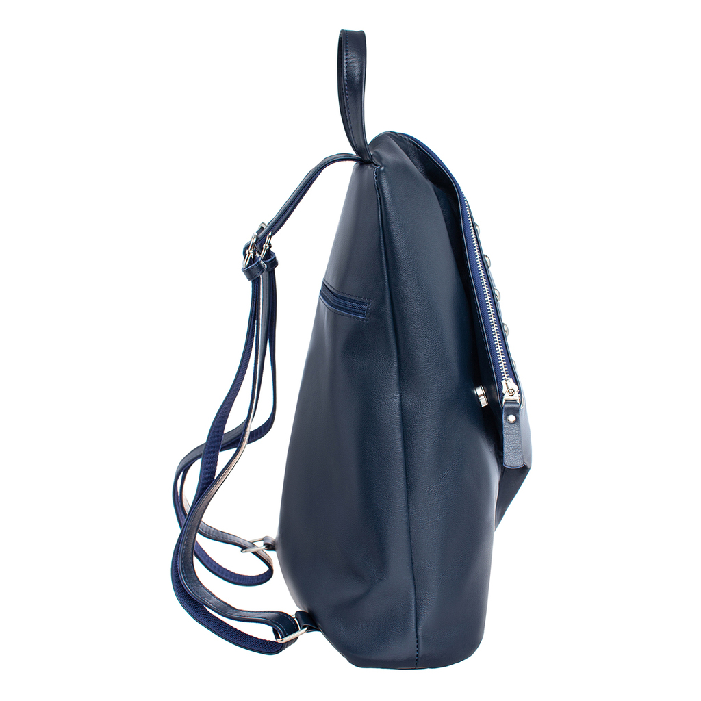 Женский рюкзак Bridges Dark Blue с оригинально зауженным верхом добавит вашему образу яркие краски. Модель насыщенного синего цвета отлично подойдет для учебы и для работы. В рюкзачок с одним отделени... Показать описаниеем легко поместится ноутбук или планшет диагональю до 14 дюймов, а также материалы формата А4. Благодаря плотному дну и жесткому каркасу модель прекрасно держит форму. Ее лицевую сторону украшает массивная горизонтальная молния и аккуратно загнутые уголки, которые словно пристегнуты к однотонной поверхности. Сшит рюкзак вручную из отборной натуральной кожи. В качестве подкладки используется износостойкий и долговечный материал Softprotection. Производитель обладает исключительным правом менять изделие на свое усмотрение, внедряя таким образом результат работ по усовершенствованию конструктивных особенностей или технологии изготовления, не допуская при этом ухудшения технических и эксплуатационных характеристик изделия. Изображение готовой продукции, размещенное на сайте производителя, может иметь отличия от фактического внешнего вида товара. Посмотрите еще: Женские кожаные рюкзаки Мужские кожаные рюкзаки Рюкзаки-трансформеры Городские рюкзаки Модные женские рюкзаки