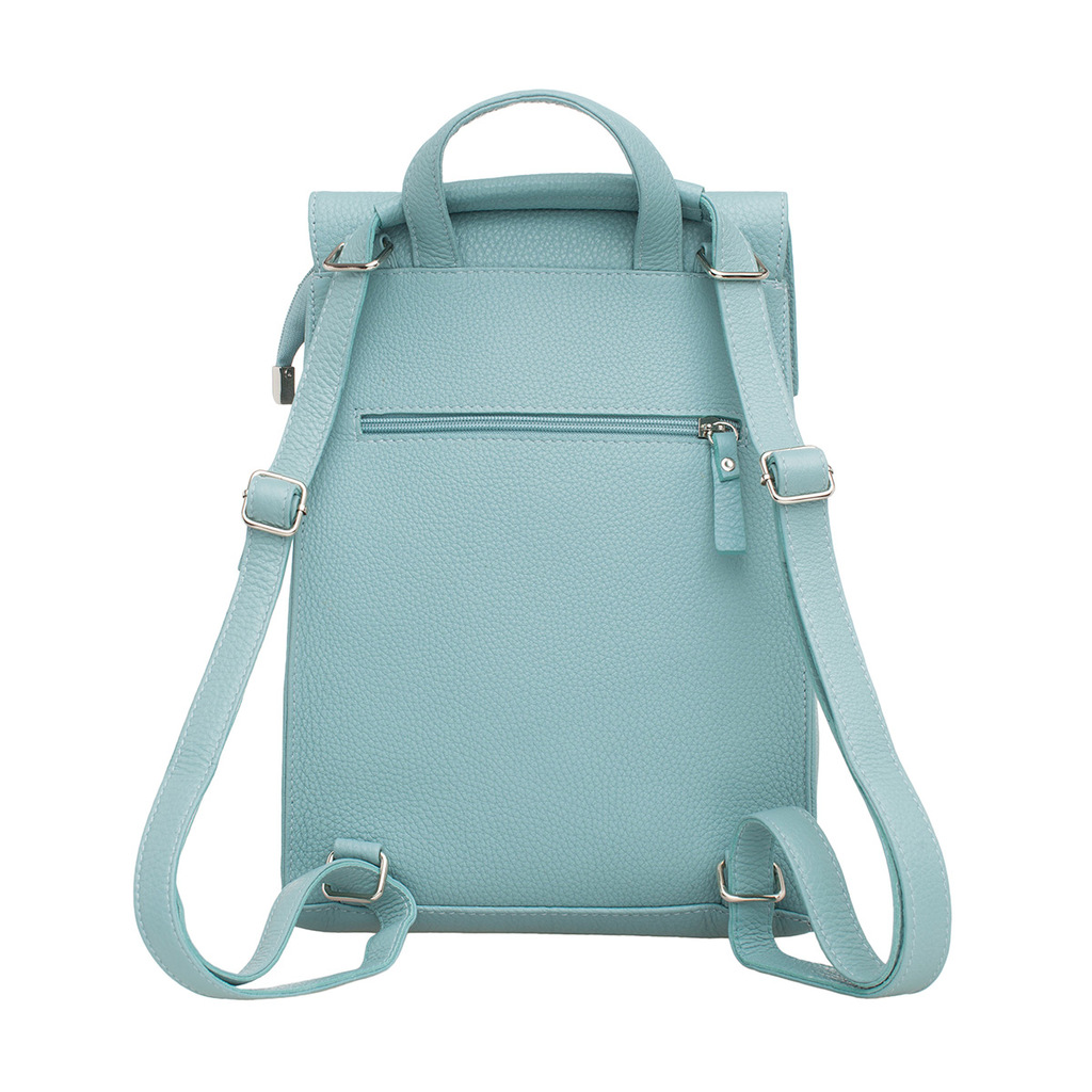 Стильный рюкзак из натуральной кожи цвета «голубой перламутр» смотрится очень женственно и нежно. Такой аксессуар обязательно станет приоритетным изделием на каждый день. Модель сочетается с любым обр... Показать описаниеазом, а возможность ее транспортировки в качестве сумки через плечо, делает возможности аксессуара практически безграничными. Поместив вещи внутрь изделия, можно не переживать по поводу их сохранности. Рюкзак фиксируется на молнию и сверху закрывается откидным магнитным клапаном. Чтобы разместить все вещи по своим местам, одно внутреннее просторное отделение оснащено карманами открытого и закрытого типа. Лямки рюкзака выполнены из качественной натуральной кожи, что позволит использовать изделие на протяжении длительного времени без ущерба для его внешнего вида. Производитель обладает исключительным правом менять изделие на свое усмотрение, внедряя таким образом результат работ по усовершенствованию конструктивных особенностей или технологии изготовления, не допуская при этом ухудшения технических и эксплуатационных характеристик изделия. Изображение готовой продукции, размещенное на сайте производителя, может иметь отличия от фактического внешнего вида товара. Посмотрите еще: Женские кожаные рюкзаки Мужские кожаные рюкзаки Рюкзаки-трансформеры Городские рюкзаки Модные женские рюкзаки