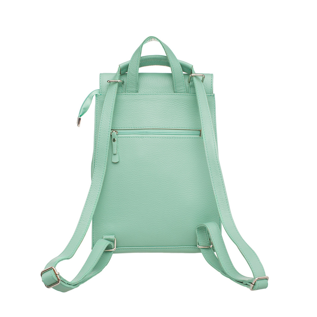 Стильный и современный рюкзак-трансформер модного мятного цвета – это отличное решение на каждый день. Такой аксессуар можно использовать в качестве сумки через плечо. Поэтому он отлично сочетается с ... Показать описаниелюбым образом, который выбирает его обладательница. Внутреннее пространство изделия не имеет лишних перегородок, что позволяет транспортировать в нем довольно внушительный объем вещей. Чтобы мелкие атрибуты не затерялись в недрах рюкзака, в нем имеются карманы открытого и закрытого типа. Фиксируется аксессуар на молнию и на откидной магнитный клапан. Модель пошита из натуральной кожи, которая имеет неповторимый рисунок, созданный самой природой. Лямки рюкзака также выполнены из кожи, что очень практично. Производитель обладает исключительным правом менять изделие на свое усмотрение, внедряя таким образом результат работ по усовершенствованию конструктивных особенностей или технологии изготовления, не допуская при этом ухудшения технических и эксплуатационных характеристик изделия. Изображение готовой продукции, размещенное на сайте производителя, может иметь отличия от фактического внешнего вида товара. Посмотрите еще: Женские кожаные рюкзаки Мужские кожаные рюкзаки Рюкзаки-трансформеры Городские рюкзаки Модные женские рюкзаки
