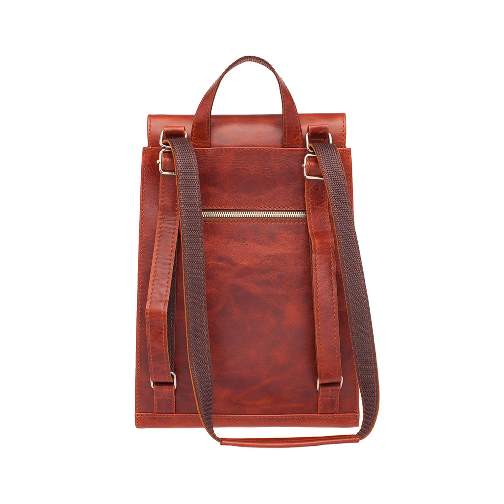 Современный женский рюкзак Ashley Burgundy изготовлен из высококачественной натуральной кожи бордового оттенка, а также обеспечивает необычайно приятные тактильные ощущения. За счет уникальной констру... Показать описаниекции, изделие легко трансформируется их рюкзачка в элегантную сумку – с помощью системы кожаных лямочек. Вместительное основное отделение дает возможность с наибольшим комфортом носить с собой множество необходимых мелочей – телефон, кошелек, косметичка и т.д., а также туда помещается небольшой планшет – с диагональю до 10" дюймов. Модель замечательно сочетается с повседневными нарядами, а также станет яркой деталью делового туалета. В любой своей трансформации модель смотрится аккуратно и очень стильно. Производитель обладает исключительным правом менять изделие на свое усмотрение, внедряя таким образом результат работ по усовершенствованию конструктивных особенностей или технологии изготовления, не допуская при этом ухудшения технических и эксплуатационных характеристик изделия. Изображение готовой продукции, размещенное на сайте производителя, может иметь отличия от фактического внешнего вида товара. Посмотрите еще: Женские кожаные рюкзаки Мужские кожаные рюкзаки Рюкзаки-трансформеры Городские рюкзаки Модные женские рюкзаки
