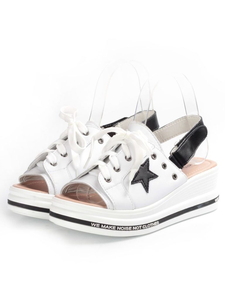 Босоножки женские летние (натуральная кожа). Артикул: 2881T-2 WHITE/BLACK. Основной материал: натуральная кожа. Вид кожи основного материала: гладкая. Высота каблука: 5,5 см. Материал подошвы: резинов... Показать описаниеая. Толщина подошвы: 3,0 см. Вид подошвы: стандартная. Способ соединения подошвы: клееная. Подкладка: натуральная кожа. Стелька: натуральная кожа. Застежка: шнурок. Тип мыска: открытый. Тип задника: открытый. Длина стельки каждого отдельно взятого размера:. 36 длина стельки 23,0 см. 37 длина стельки 23,5 см. 38 длина стельки 24,5 см. 39 длина стельки 25,0 см. 40 длина стельки 25,5 см. 41 длина стельки 26,5 см. Витринный образец 36-го размера. Длина стельки 23,0 см. Цвет: Белый (витрина).