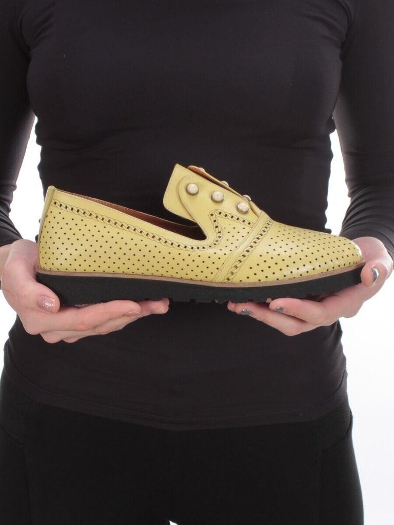 Лоферы женские летние (натуральная кожа). Артикул: 4202.160 YELLOW. Основной материал: натуральная кожа. Вид кожи основного материала: гладкая, перфорированная. Высота каблука: 3,0 см. Материал подошв... Показать описаниеы: резиновая. Толщина подошвы: 2,0 см. Вид подошвы: стандартная. Способ соединения подошвы: клееная. Подкладка: натуральная кожа. Стелька: натуральная кожа. Тип мыска: закрытый. Тип задника: закрытый. Высота обуви по пятке: 9,0 см. Длина стельки каждого отдельно взятого размера:. 36 длина стельки 23,0 см. 37 длина стельки 23,5 см. 38 длина стельки 24,5 см. 39 длина стельки 25,0 см. 40 длина стельки 25,5 см. Витринный образец 36-го размера. Длина стельки 23,0 см.