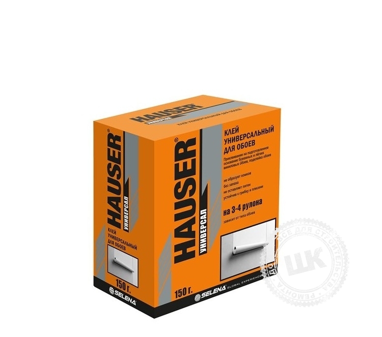Клей HAUSER универсальный подходит для приклеивания на подготовленные основания бумажных лёгких виниловых обоев, подклейки обоев, а также грунтования сильновпитывающих оснований перед поклейкой обоев.... Показать описание После разведения принимает гелеобразную структуру, которая не образует комочков, не имеет запаха и не меняет цвет обоев. Применяемые в составе клея бактерецидные и фунгицидные вещества предотвращают появление плесени и грибков.