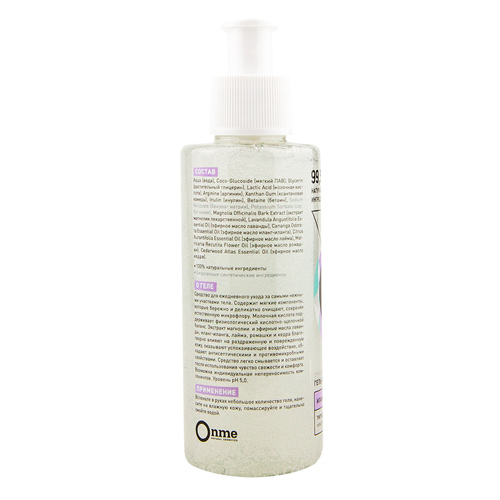 Средство для ежедневного ухода за самыми нежными участками тела. Содержит мягкие компоненты, которые бережно и деликатно очищают, сохраняя естественную микрофлору. Молочная кислота поддерживает физиол... Показать описаниеогический кислотно-щелочной баланс. Экстракт магнолии и эфирные масла лаванды, иланг-иланга, лайма, ромашки и кедра благотворно влияют на раздраженную и поврежденную кожу, оказывают успокаивающее воздействие, обладают антисептическими и противомикробными свойствами. Средство легко смывается и оставляет после использования чувство свежести и комфорта. Возможна индивидуальная непереносимость компонентов. ОЗНАКОМИТЬСЯ СО СПОСОБОМ ПРИМЕНЕНИЯ И ОТЗЫВАМИ МОЖНО ПО ЭТОЙ ССЫЛКЕ