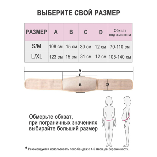 Пояс-бандаж ND601 для беременных. Рекомендуется использовать с 4-5 месяцев беременности. Внутренняя часть выполнена из мягкого хлопка, не вызывает раздражение даже чувствительной кожи. Мягкая широкая ... Показать описаниепередняя часть подстраивается под форму тела, избавляет от дискомфорта в области мочевого пузыря. Боковая застежка-липучка позволяет легко надевать бандаж и регулировать размер в течение всего периода беременности. Преимущества: без излишнего сдавливания живота, надежная поддержка, удобный, мягкий и воздухопроницаемый материал, легко регулируется степень утяжки, снимает нагрузку с позвоночника, подходит для ежедневной носки, не заметен под одеждой, снижает вероятность появления растяжек. Показания: поддержка органов малого таза, при ослаблении связок тазового кольца, при болях в спине, предрасположенности к растяжкам, многоплодная беременность, угроза преждевременных родов. Размер S/M (окружность тела под животом 70-110 см), размер L/XL (окружность тела под животом 105-140 см). ОЗНАКОМИТЬСЯ СО СПОСОБОМ ПРИМЕНЕНИЯ И ОТЗЫВАМИ МОЖНО ПО ЭТОЙ ССЫЛКЕ