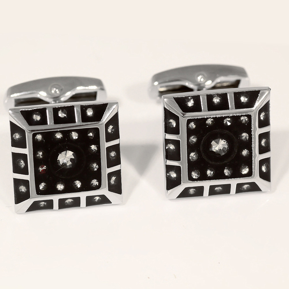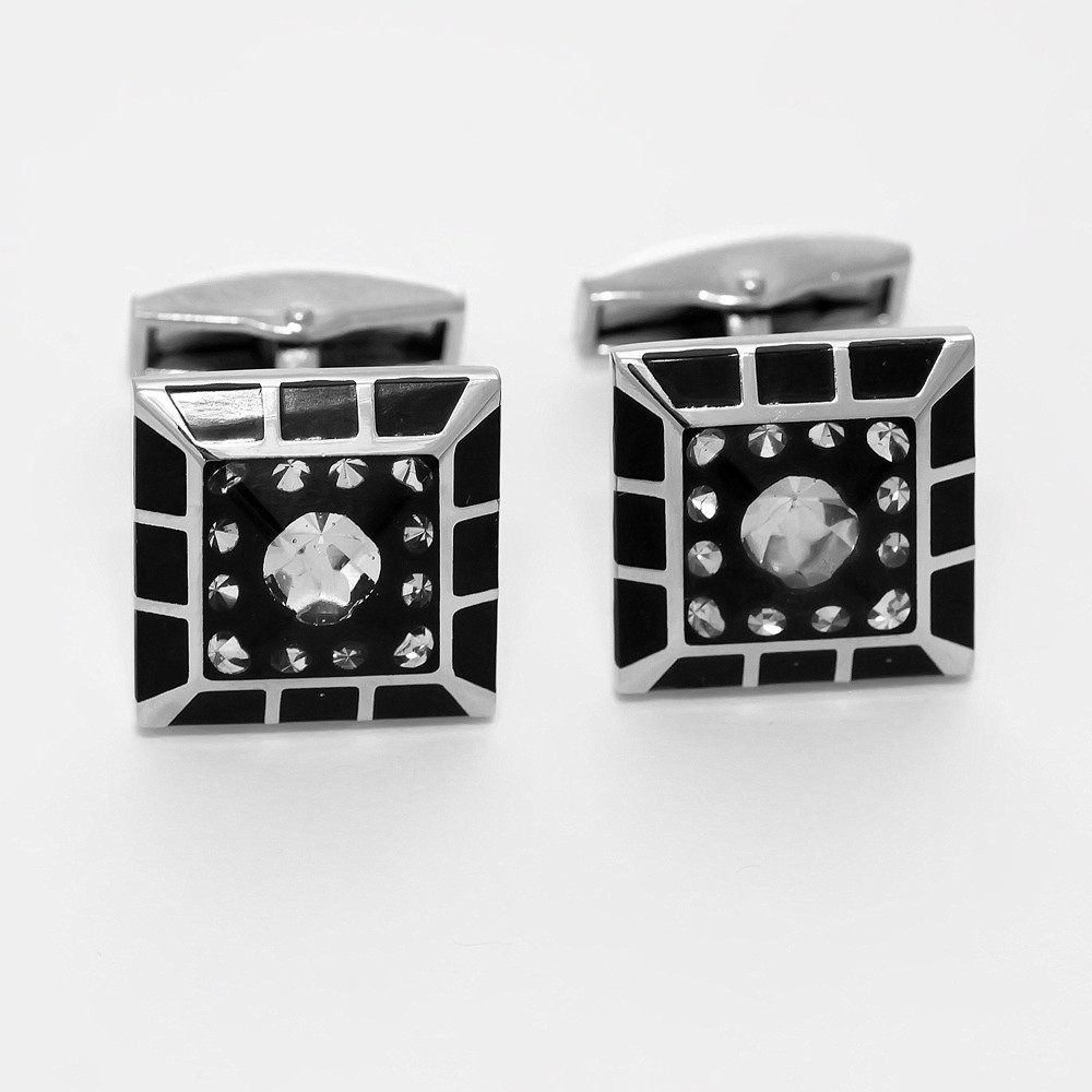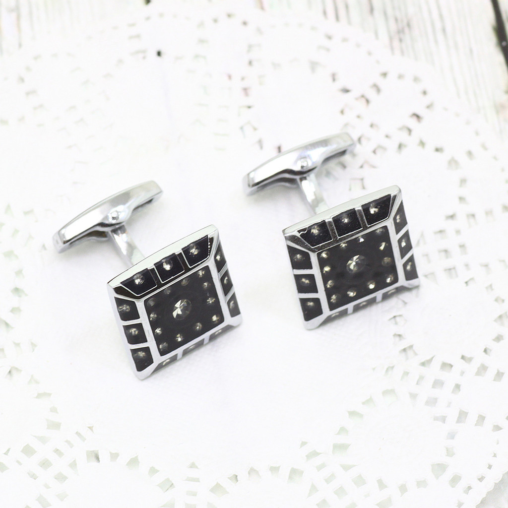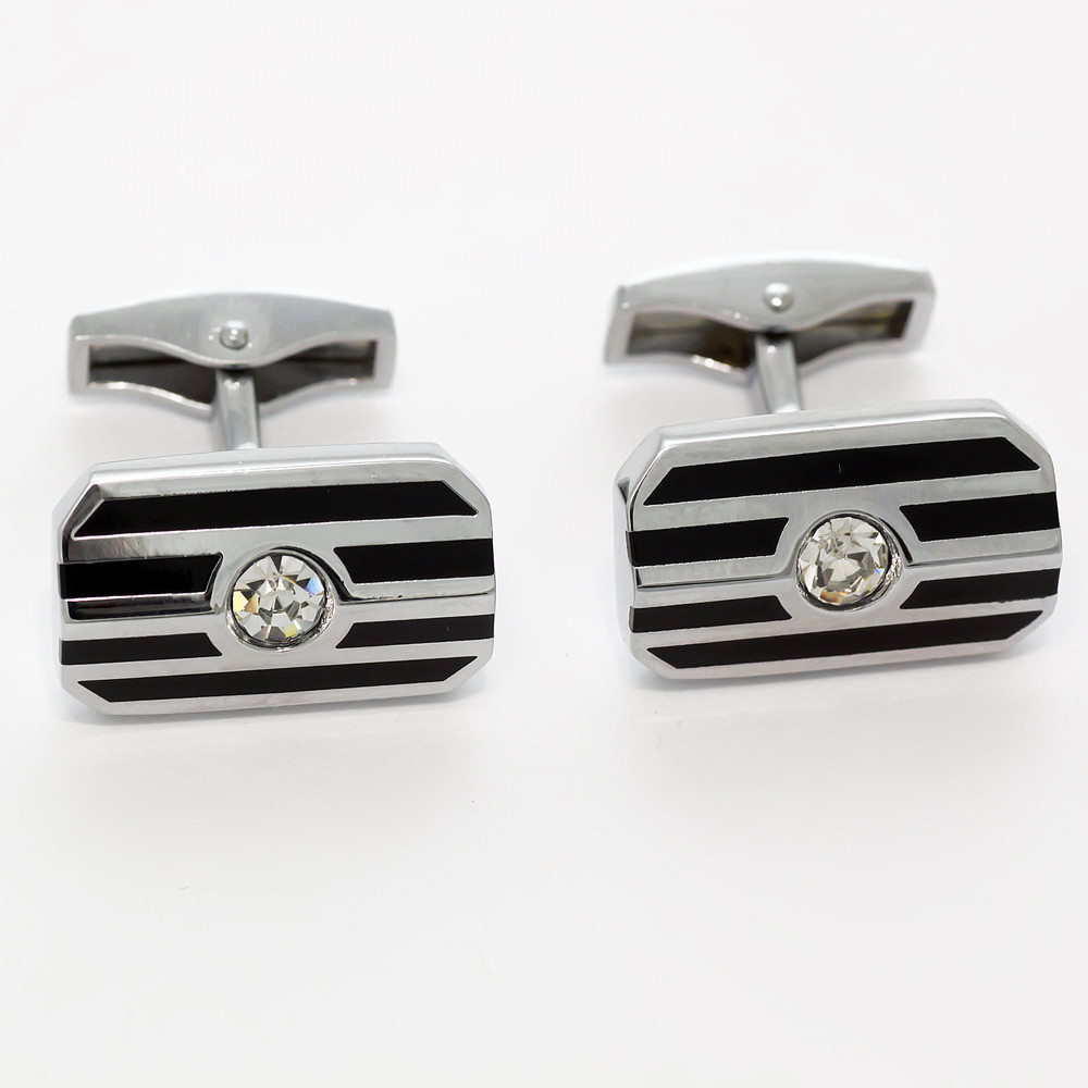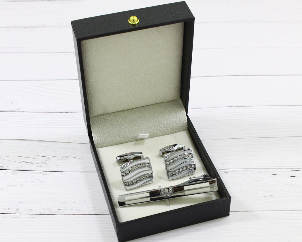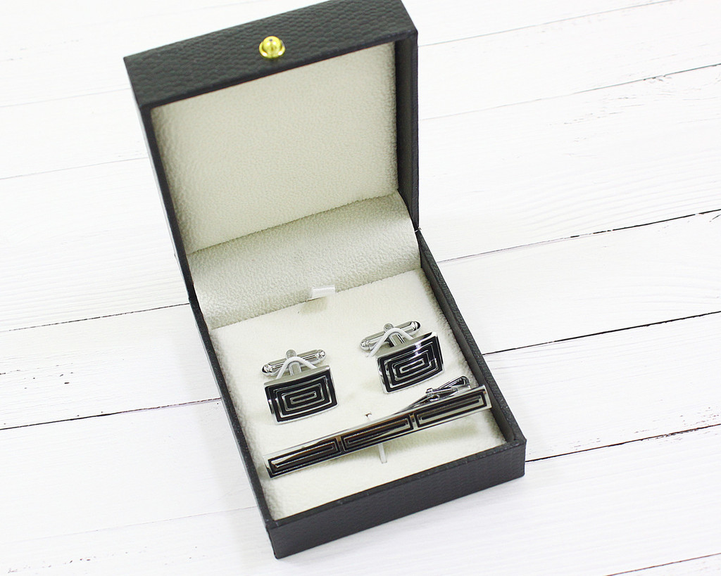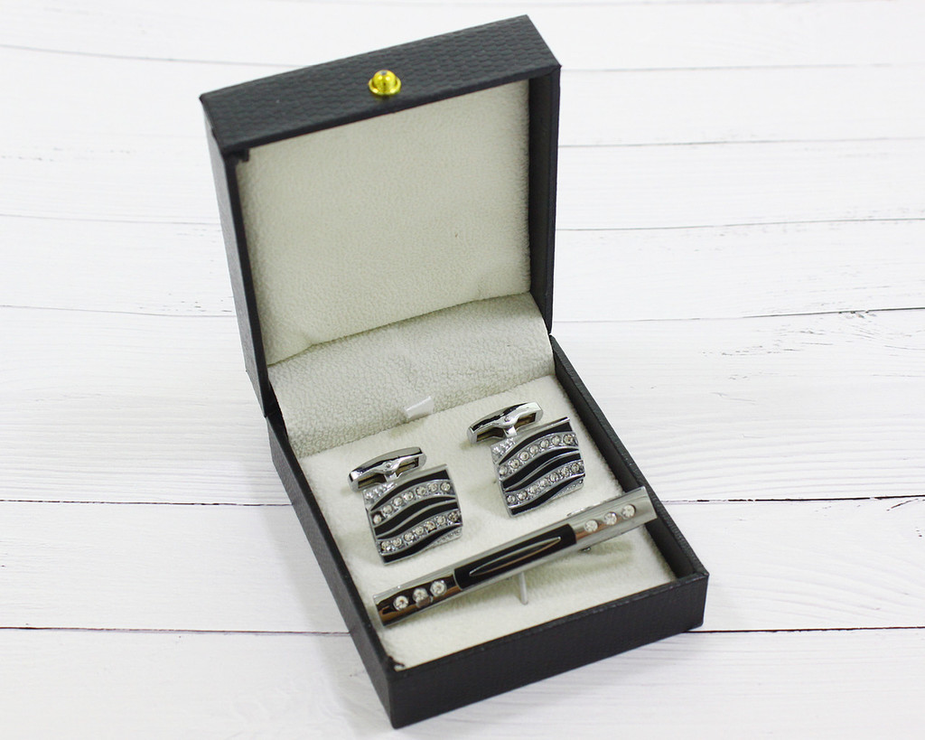 Механизм сцепки запонок: вращающийся штырек; материал: гипоаллергенный ювелирный сплав/ эмаль; цвет металла: серебристый набор зажим для галстука и запонки для элегантного мужчины..