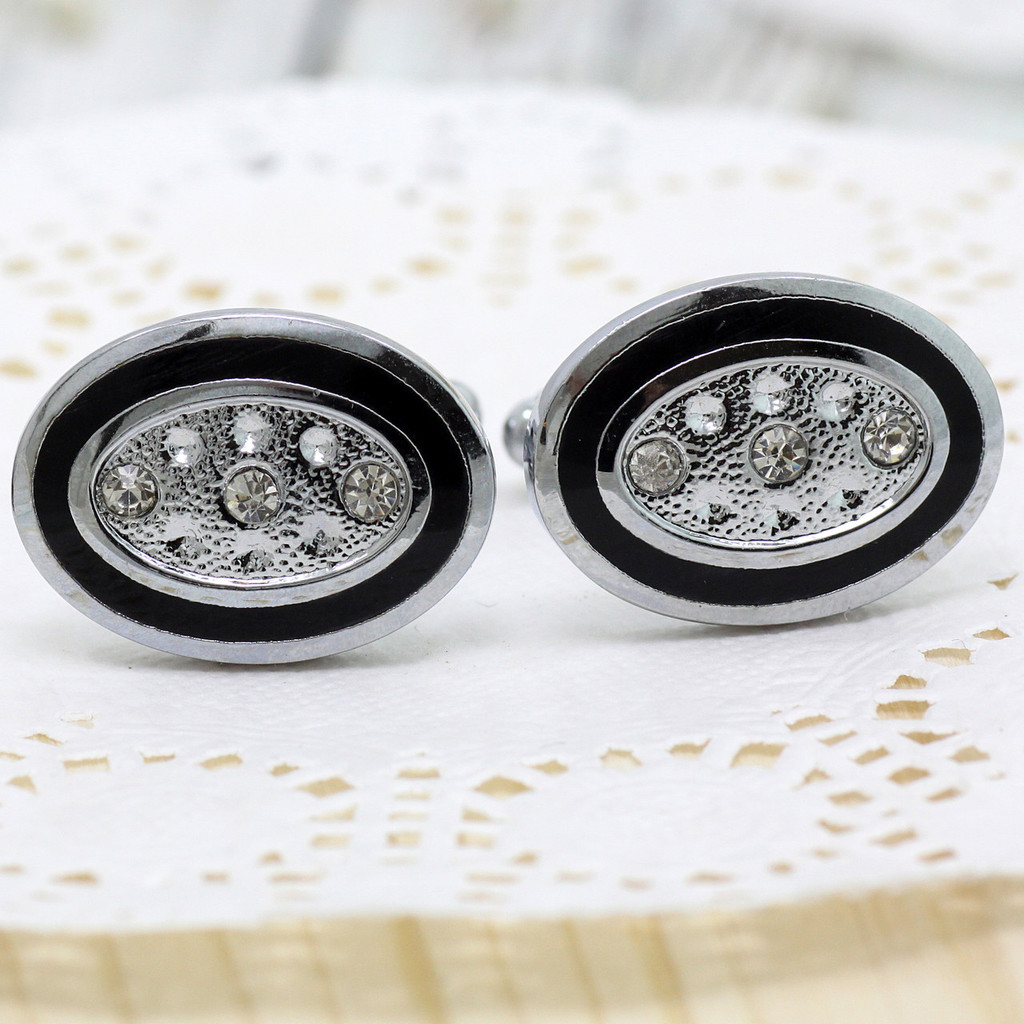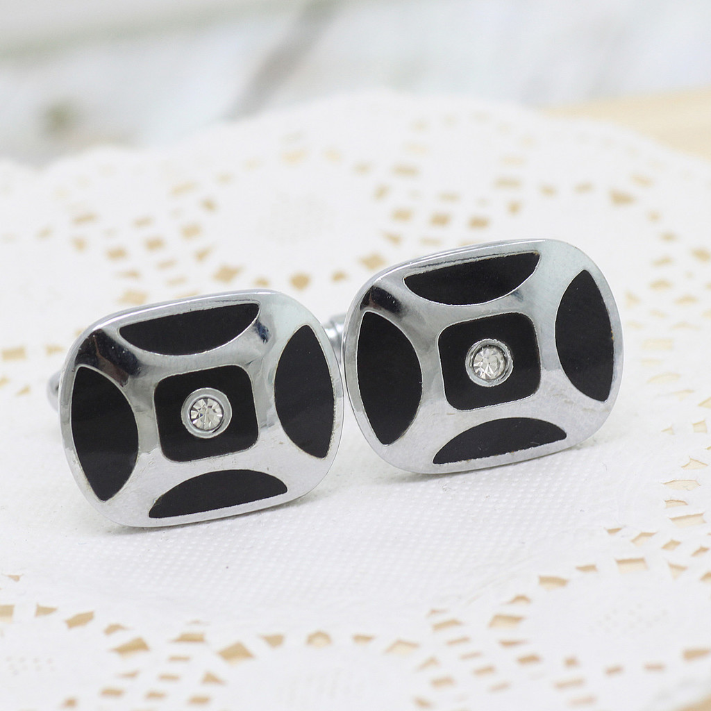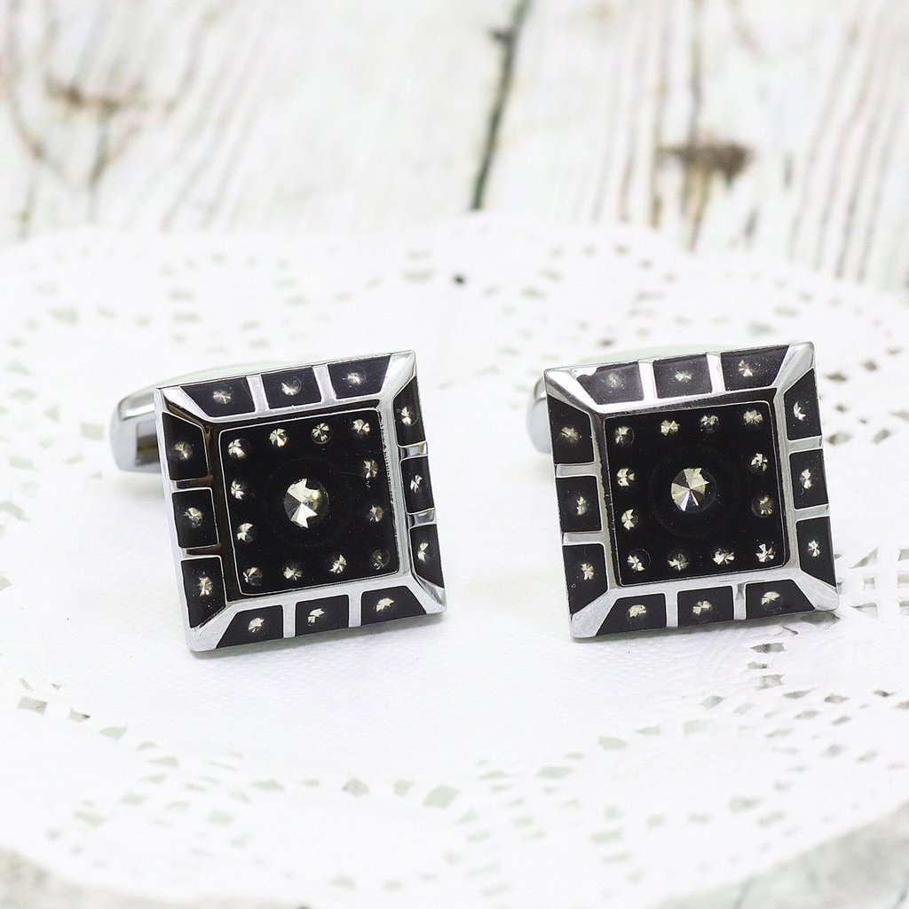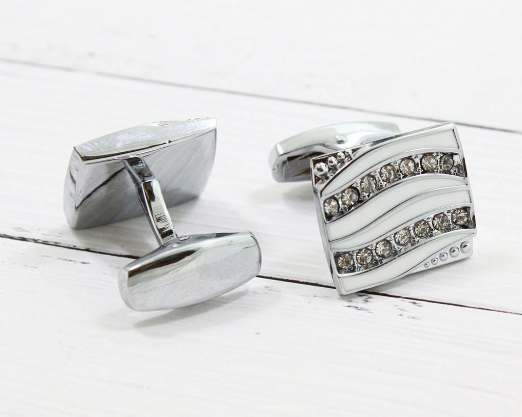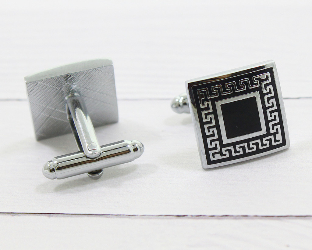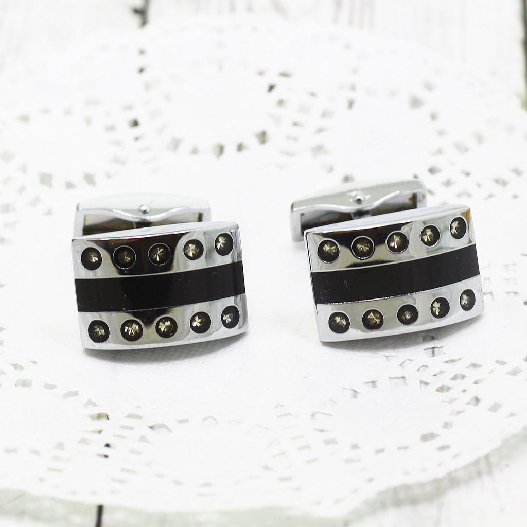 Механизм сцепки запонок: вращающийся штырек; материал: гипоаллергенный ювелирный сплав/ эмаль; цвет металла: серебристый набор зажим для галстука и запонки для элегантного мужчины..