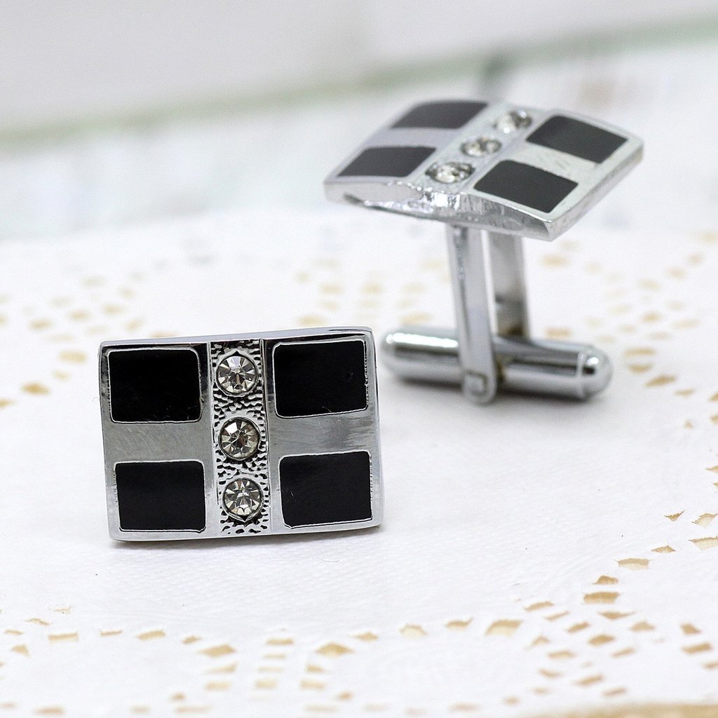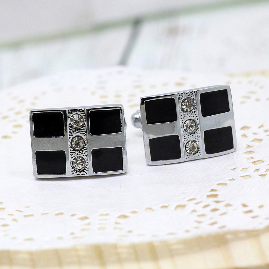 Механизм сцепки запонок: вращающийся штырек; камни вставки: стразы; материал: гипоаллергенный ювелирный сплав/ эмаль; цвет металла: серебристый набор зажим для галстука и запонки для элегантного мужчи... Показать описаниены..