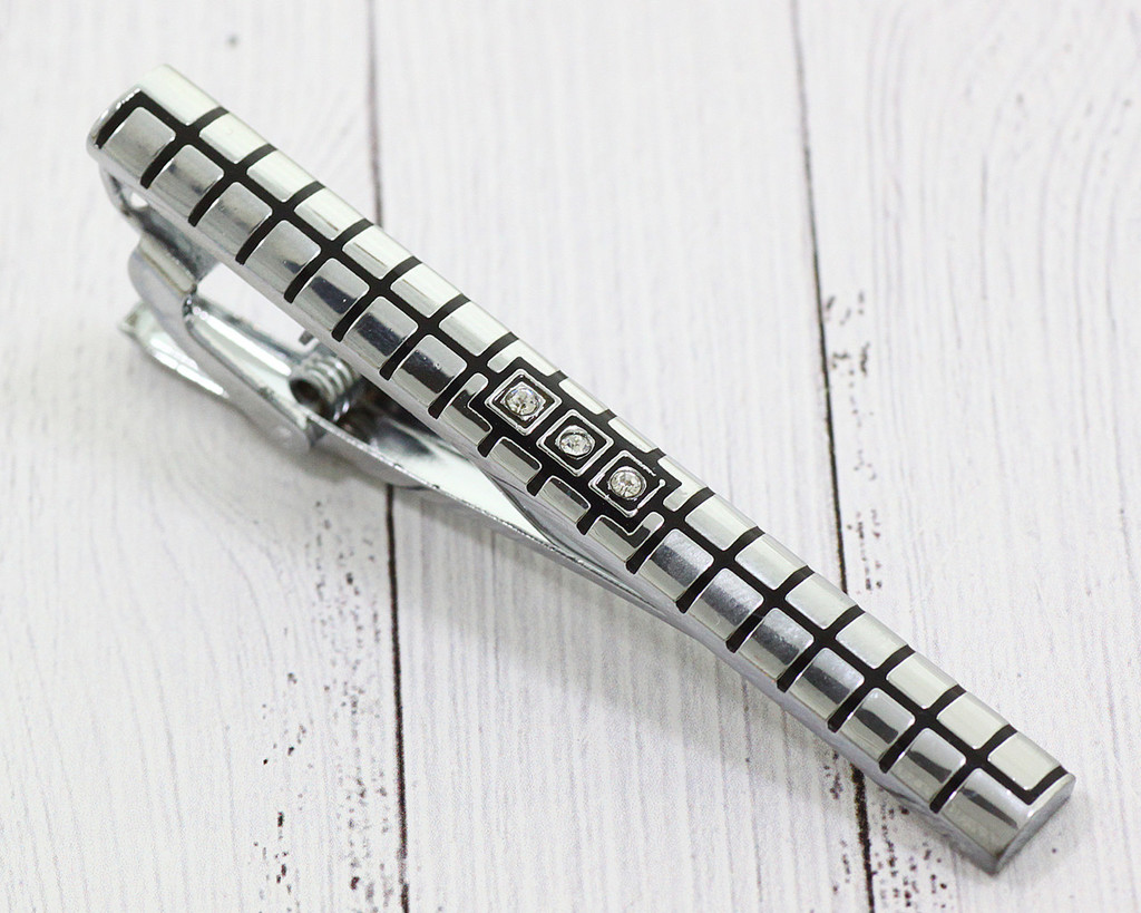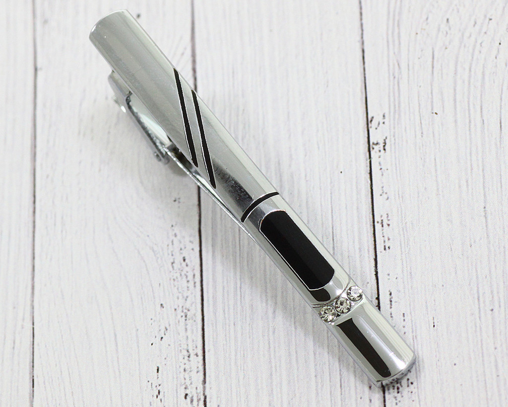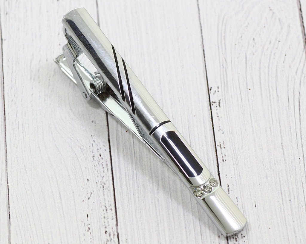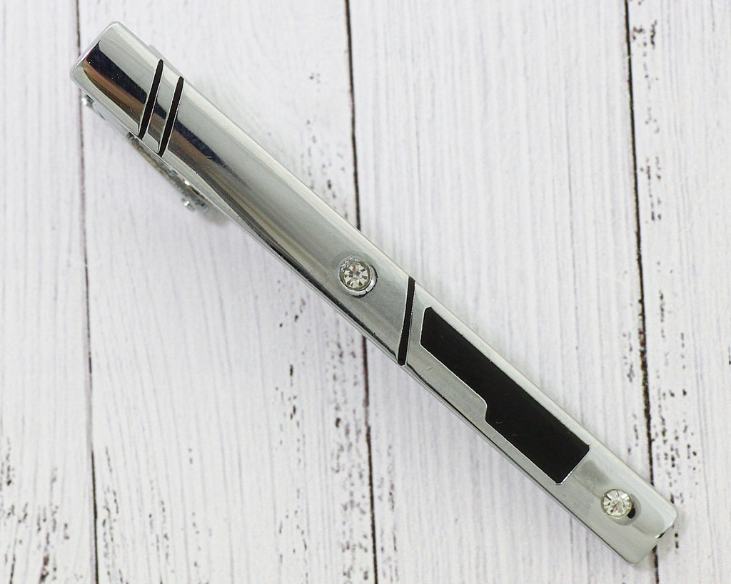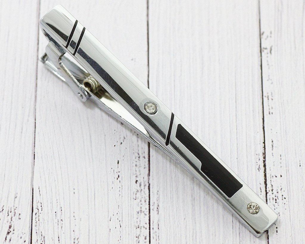 Камни вставки: стразы; материал: гипоаллергенный ювелирный сплав/ эмаль; цвет металла: серебристый для элегантного мужчины надежный практичный зажим для галстука. Размер: 6 см..