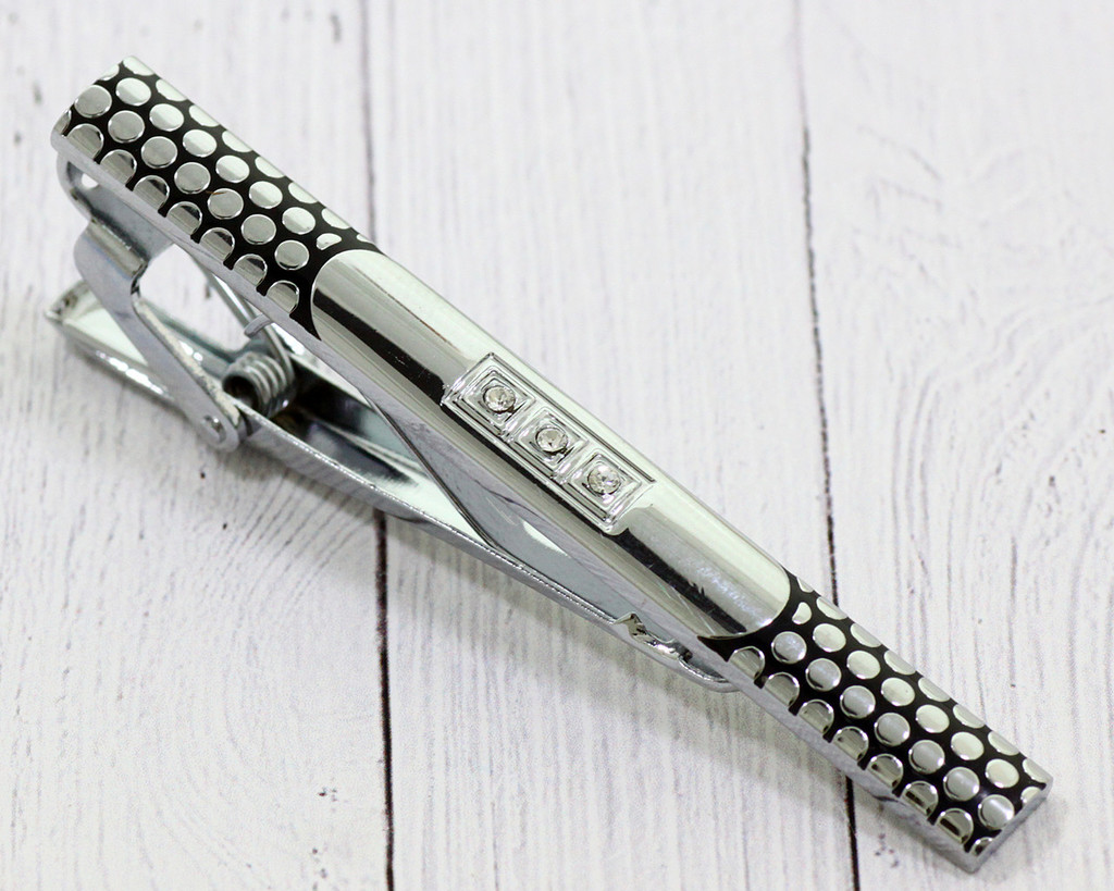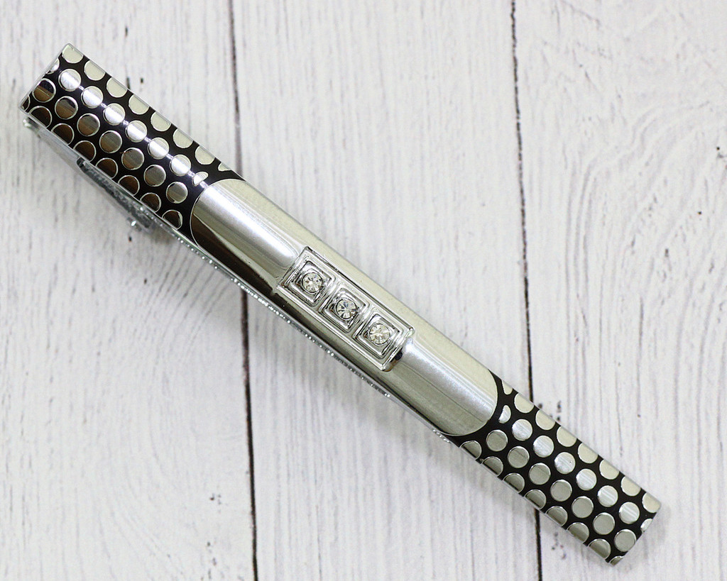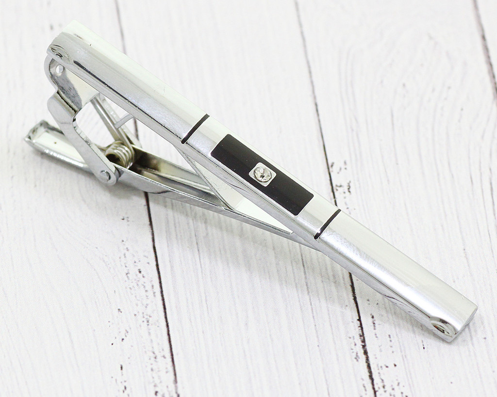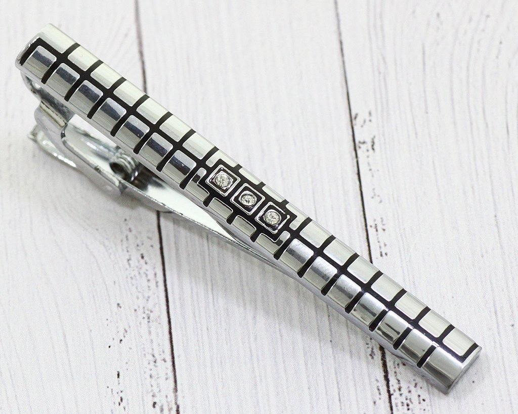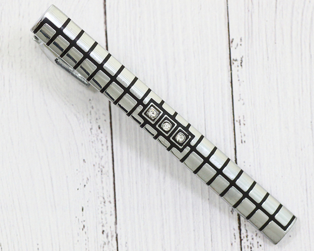 Камни вставки: стразы; материал: гипоаллергенный ювелирный сплав/ эмаль; цвет металла: серебристый для элегантного мужчины надежный практичный зажим для галстука. Размер: 6 см..