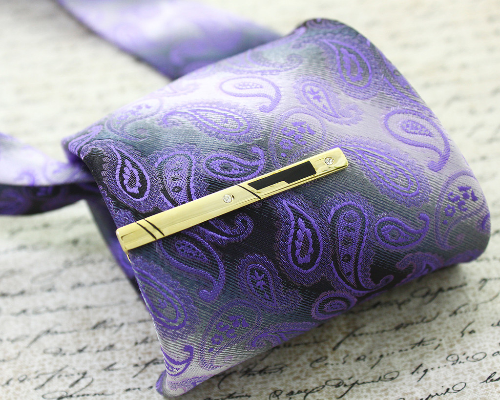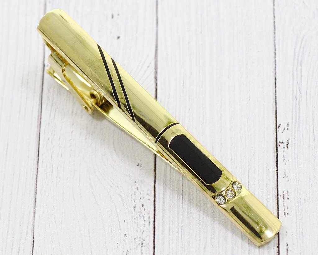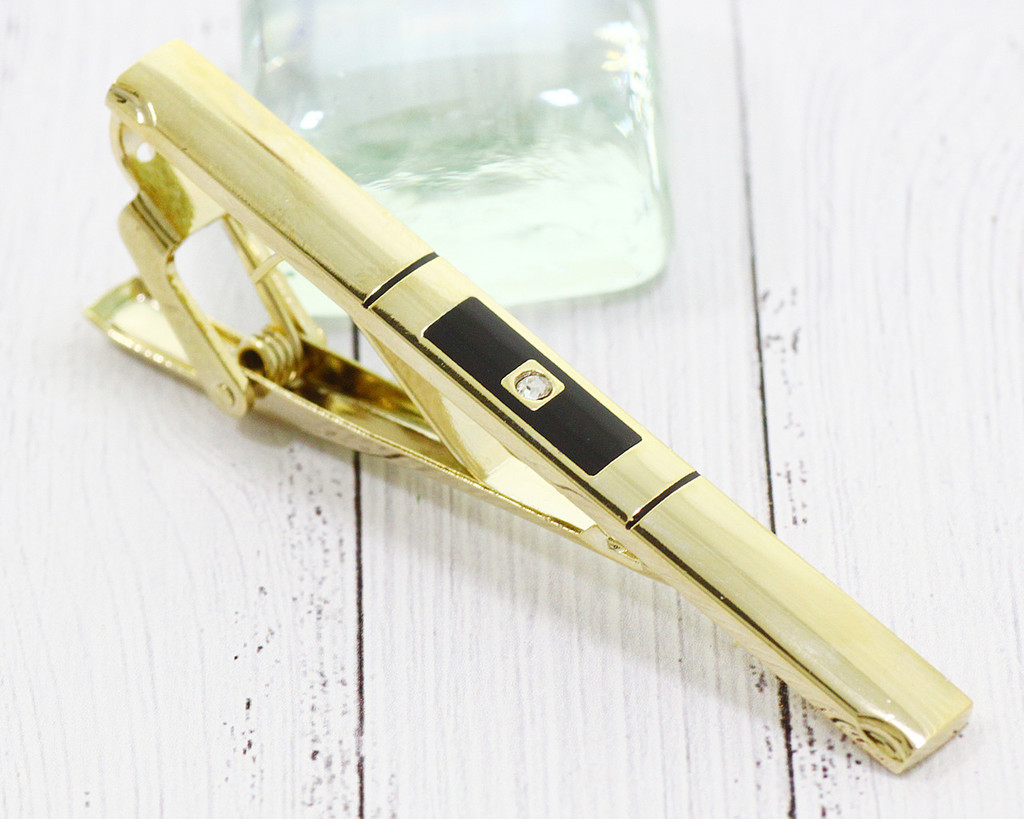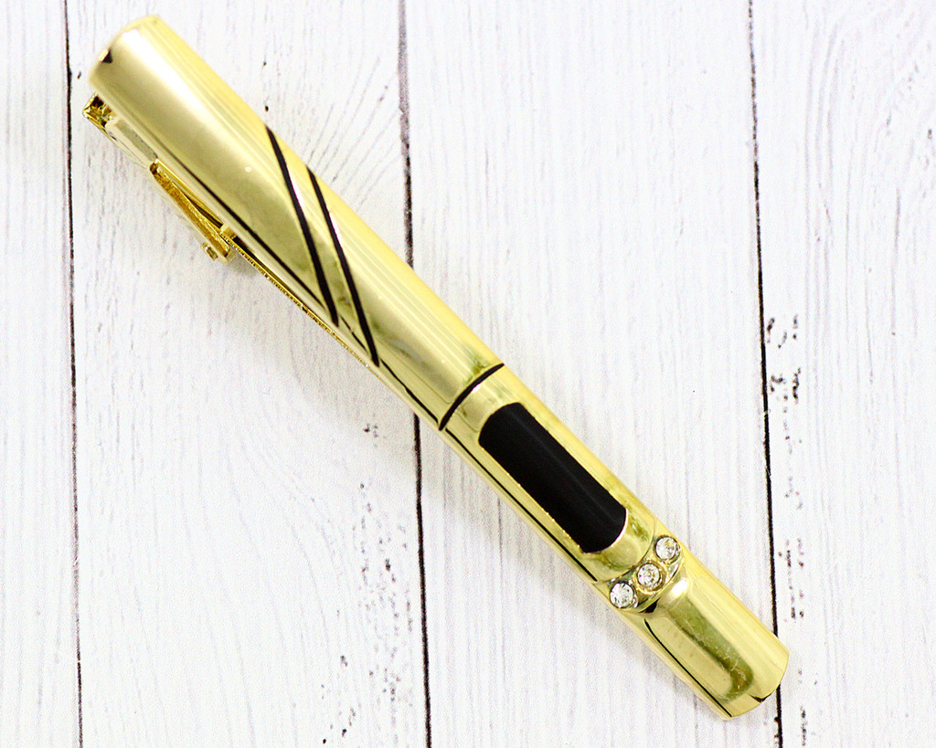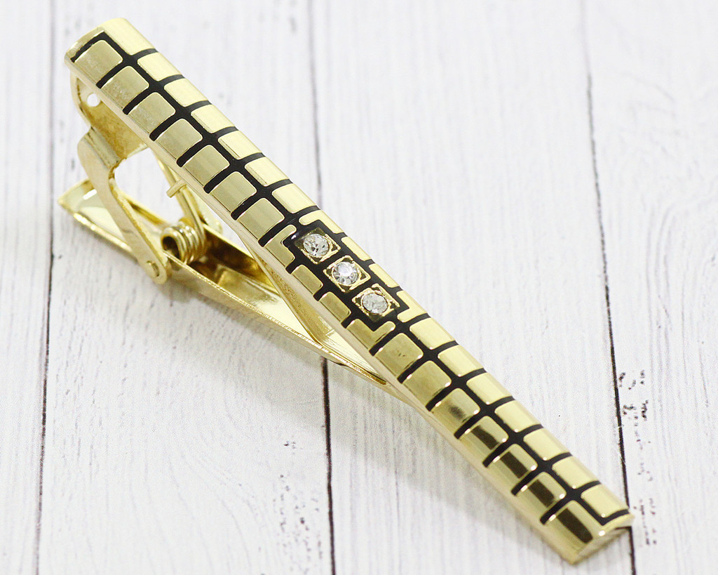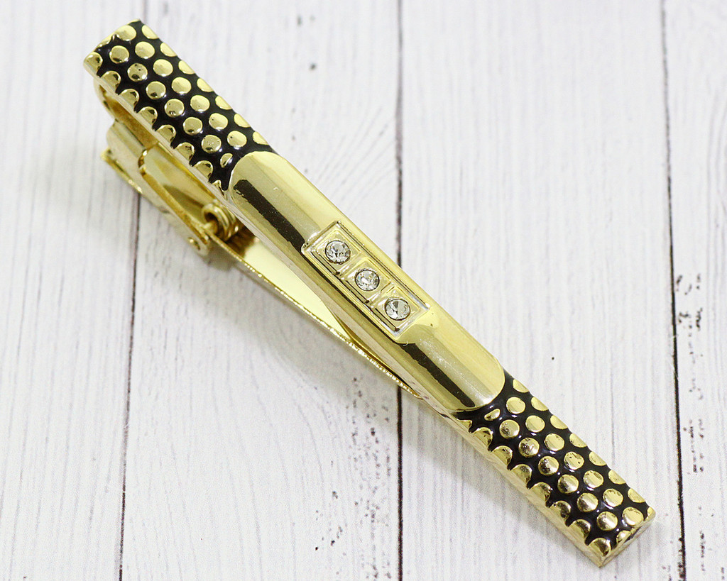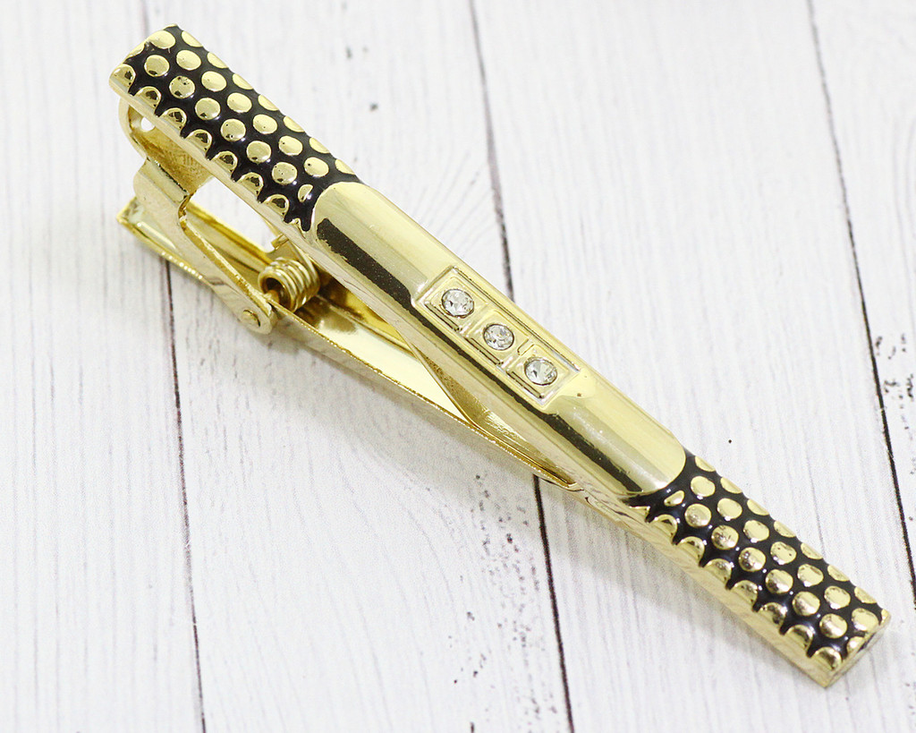 Камни вставки: стразы; материал: гипоаллергенный ювелирный сплав/ эмаль; цвет металла: золотистый для элегантного мужчины надежный практичный зажим для галстука. Размер: 6 см..