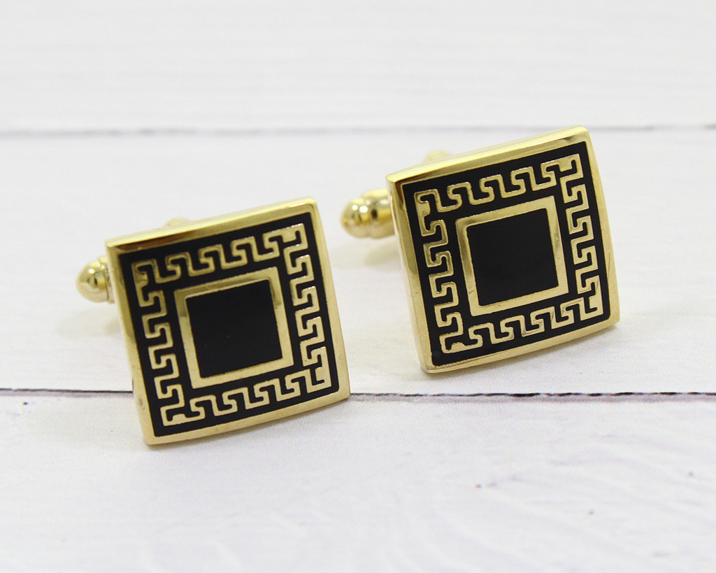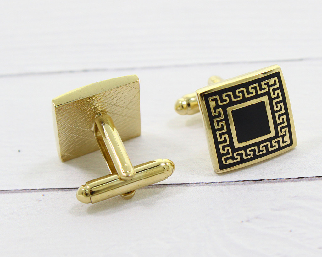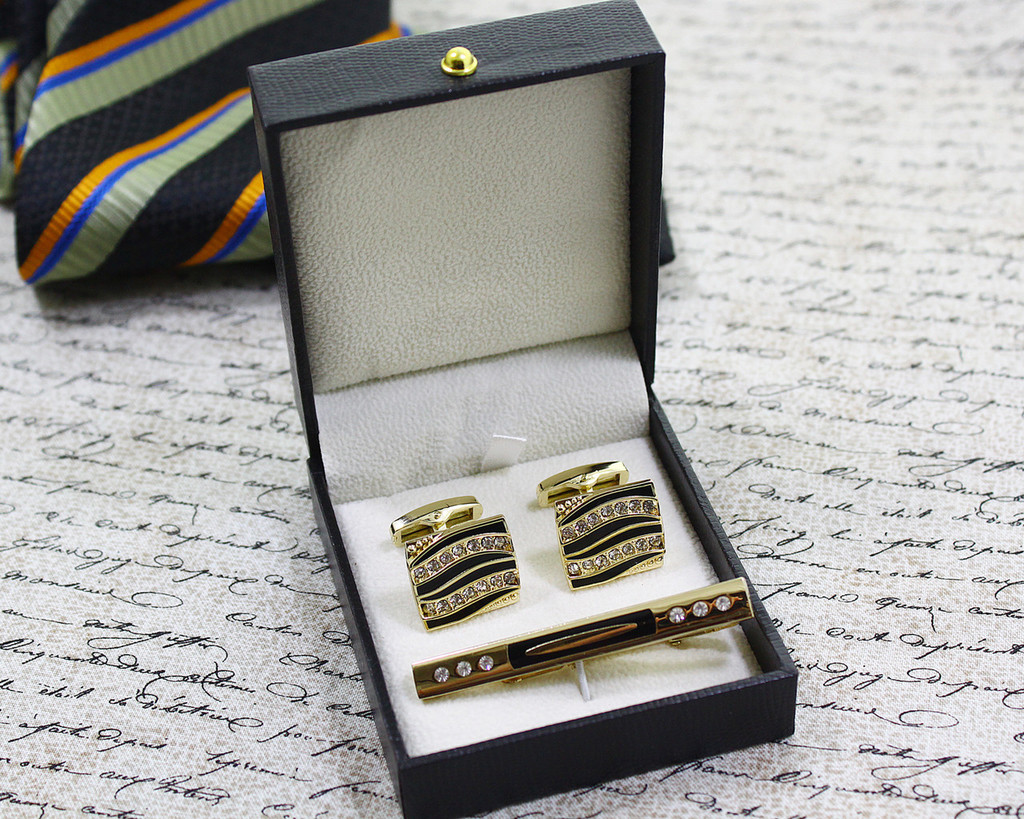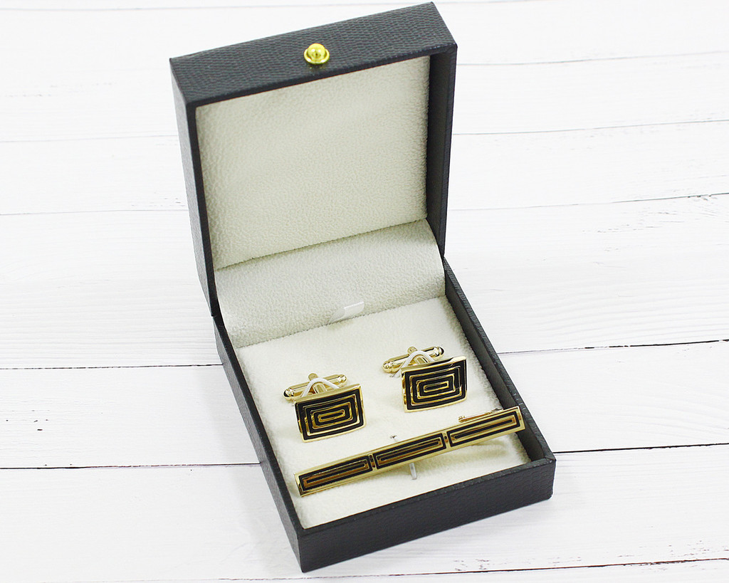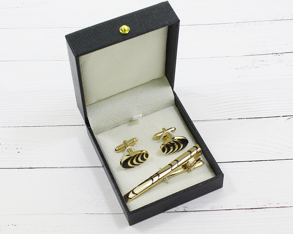 Механизм сцепки запонок: вращающийся штырек; материал: гипоаллергенный ювелирный сплав/ эмаль; цвет металла: золотистый набор зажим для галстука и запонки для элегантного мужчины..