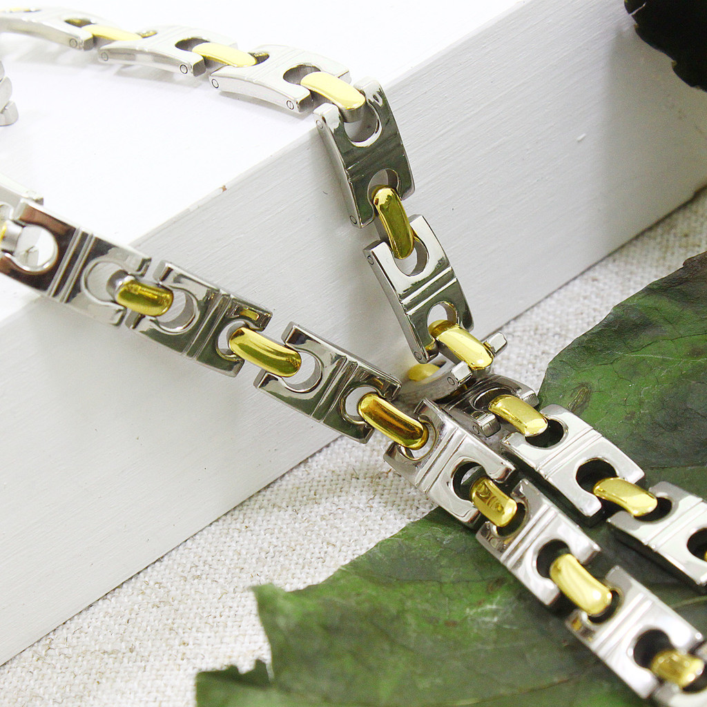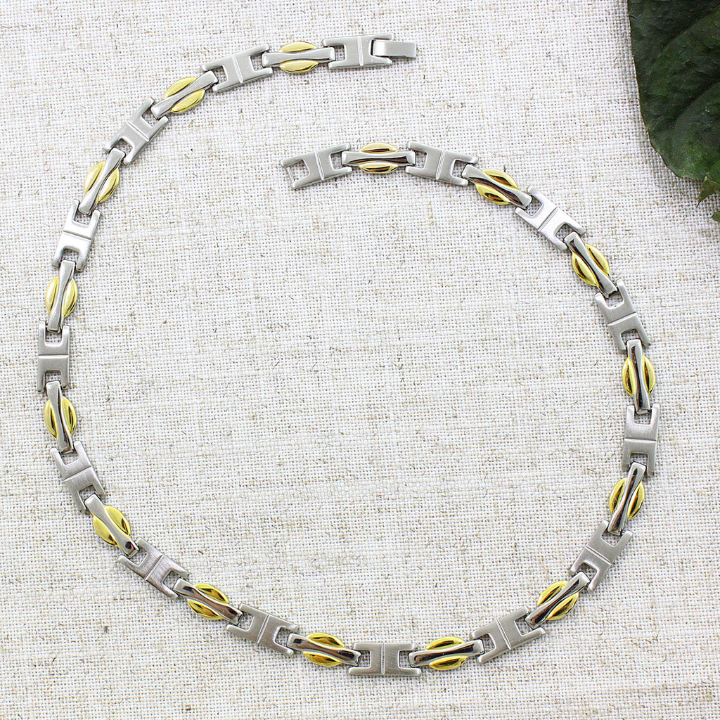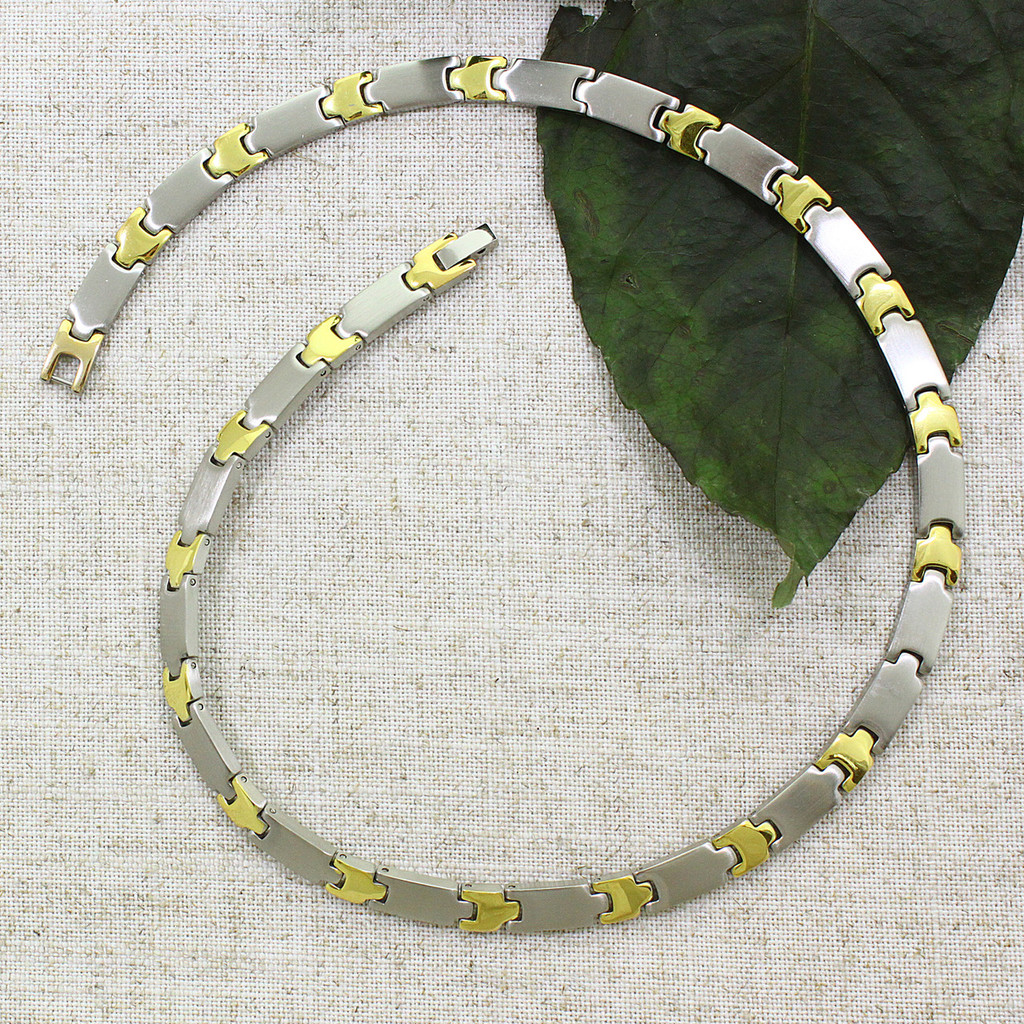 Пол: унисекс; материал: медицинская сталь; цвет и оттенок: золотистый-серебристый стильное колье из стали 316L имеет высокую износостойкость, не окисляется, не темнеет, не вызывает аллергии. Размер ко... Показать описаниелье можно регулировать убрав одно звено. Максимальная длина 50 см...