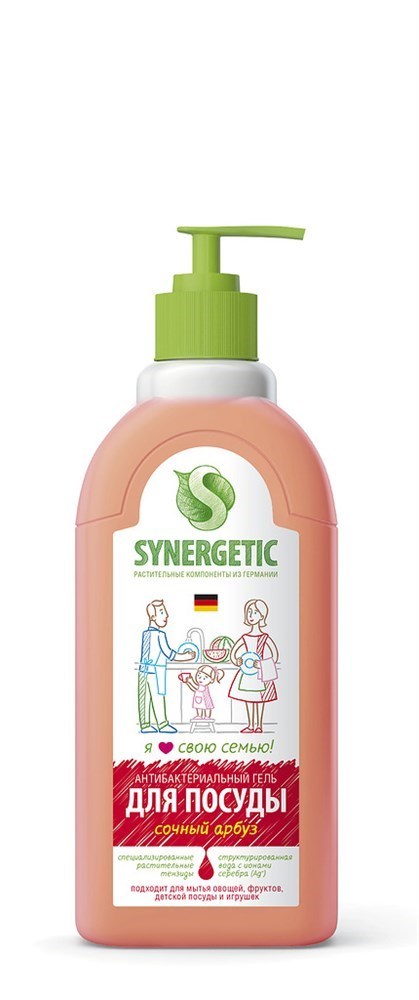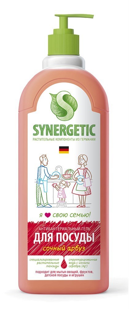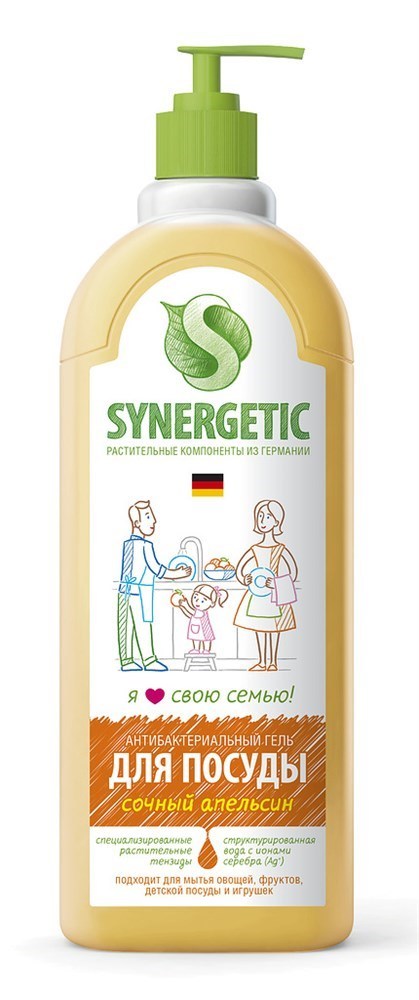 Концентрированный антибактериальный гель для посуды SYNERGETIC – это экологичное, безопасное и эффективное средство для мытья посуды, фруктов и овощей. Гель полностью смывается водой и подходит для мы... Показать описаниетья детской посуды, сосок, бутылочек и игрушек. Устраняет жир и запахи с посуды даже в холодной воде благодаря синергетическому сочетанию компонентов. Мягкие биоразлагаемые тензиды, полученные из растительного масла, удаляют органические загрязнения с посуды и обеспечивают хорошее пенообразование. Гель для посуды содержит гипоаллергенные отдушки на основе эфирных масел, поэтому подходит даже для людей с чувствительной кожей рук. Натуральный растительный глицерин в составе геля защищает кожу рук от сухости и раздражения. Аппликационные тесты, проведенные международным агентством ICEA, подтверждают отсутствие раздражающего эффекта на кожу человека. Гель для посуды SYNERGETIC сертифицирован в Итальянском институте этической и экологической сертификации ICEA и имеет международный сертификат, подтверждающий биоразлагаемость, безопасность и эффективность средства.