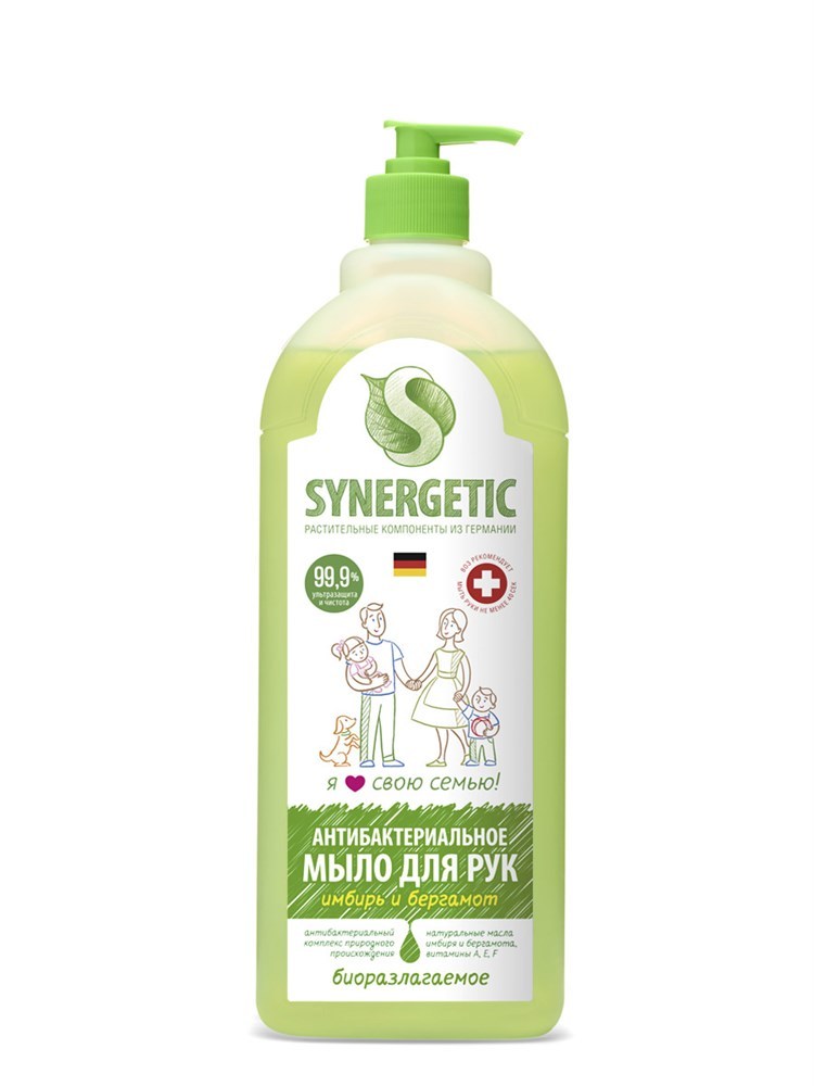 SYNERGETIC ЖИДКОЕ МЫЛО Имбирь и бергамот, чистота и ультразащита 99,9%, флакон 1лВопросы по товару