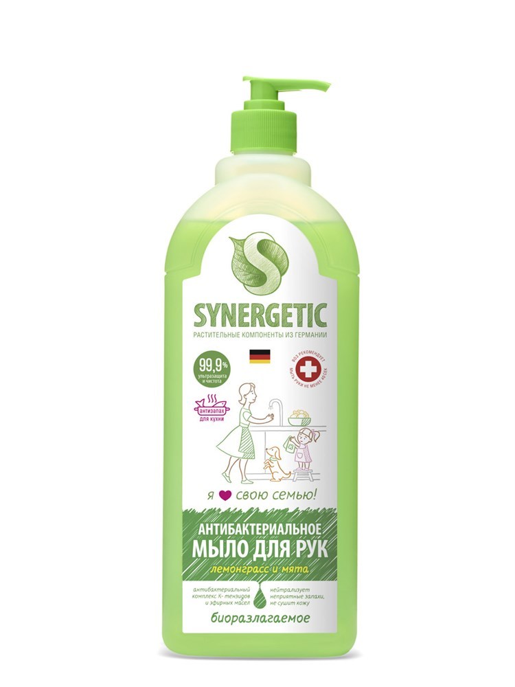 SYNERGETIC ЖИДКОЕ МЫЛО АНТИЗАПАХ Лемонграсс и мята, чистота и ультразащита 99,9%, флакон 1лВопросы по товару
