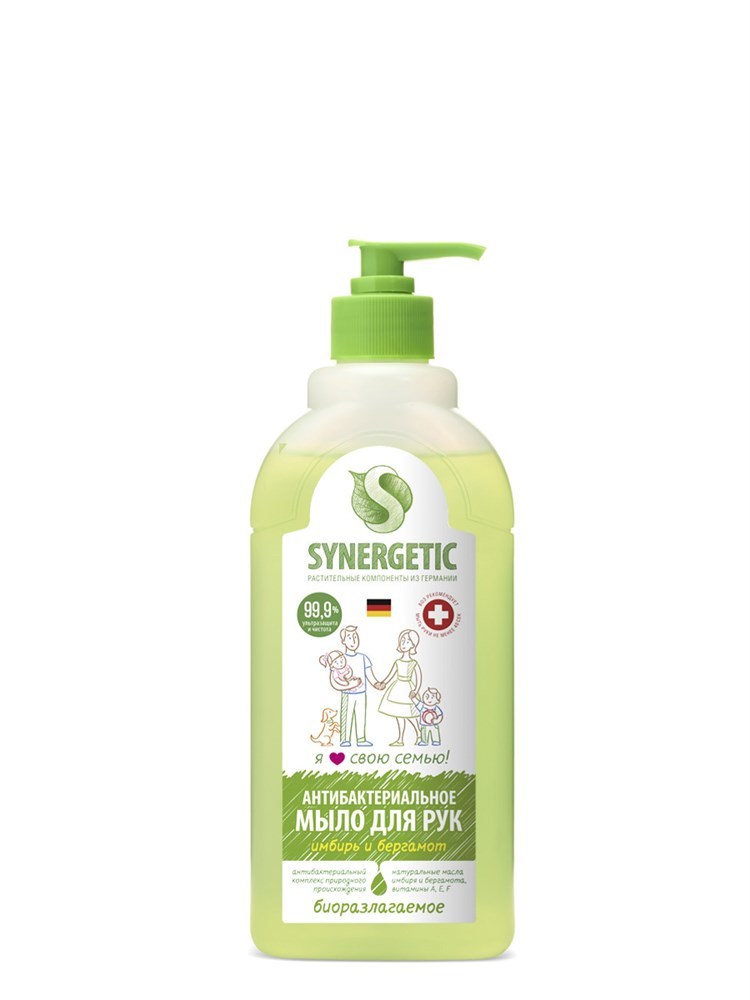 SYNERGETIC ЖИДКОЕ МЫЛО Имбирь и бергамот, чистота и ультразащита 99,9%, флакон 0,5лВопросы по товару